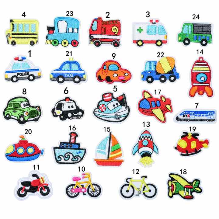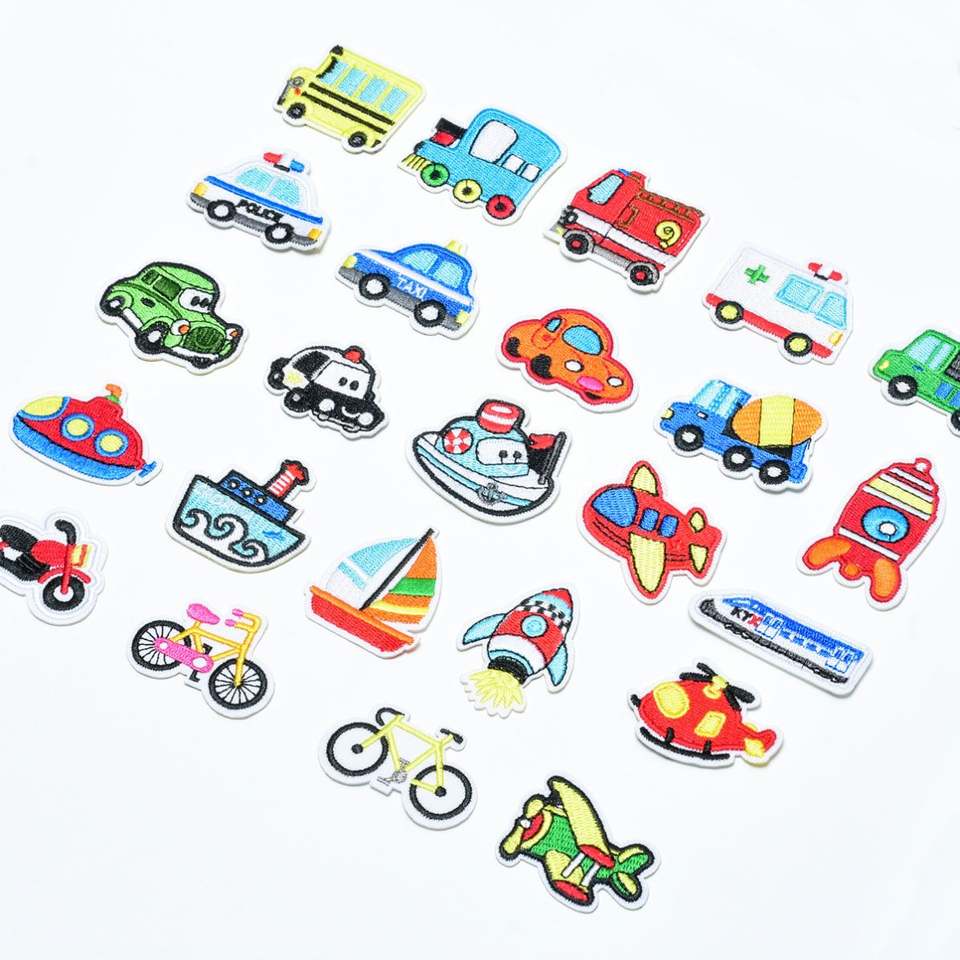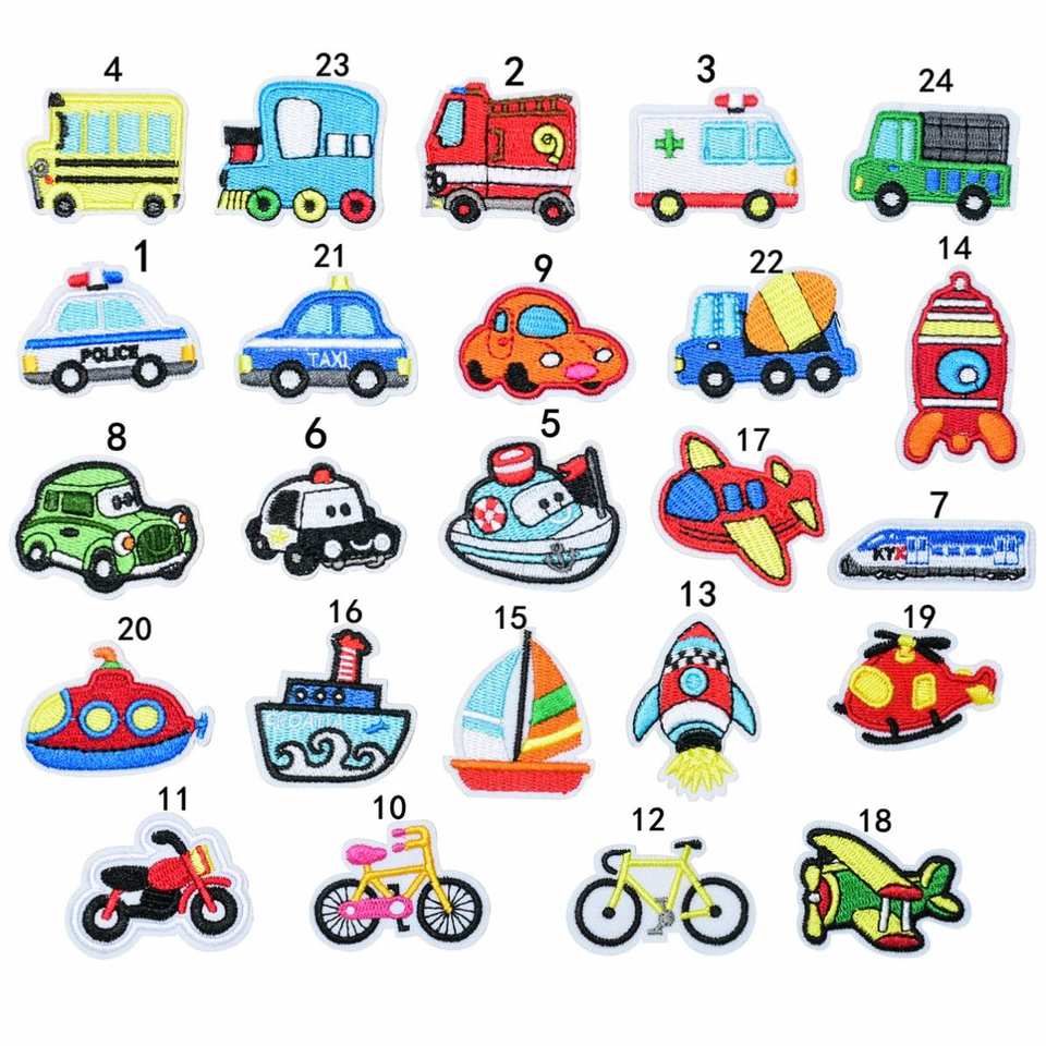 Parche Termoadhesivo con Bordado de Dibujos Animados de Avión, Barco, Tren y Bicicleta para Ropa y Bolsas de Niños