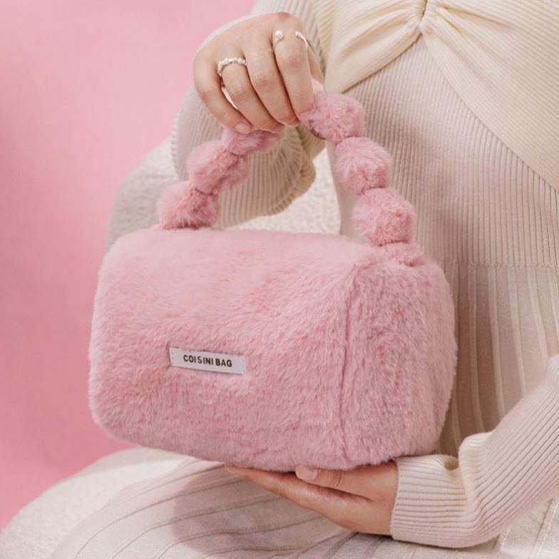 Bolso de Mano para Mujer con Peluche Sintético de Conejo, Moderno y Portátil, para Maquillaje