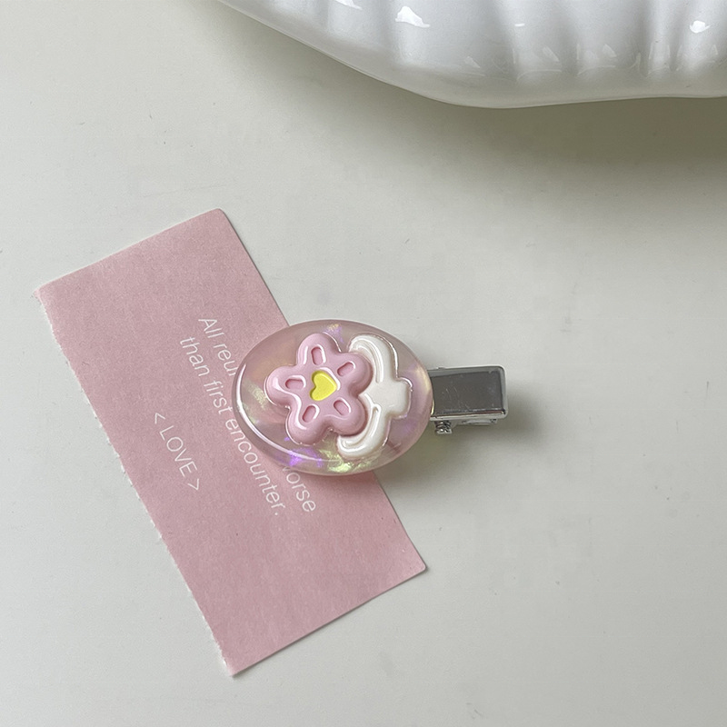 Pinza de pelo de acetato con diseño de flores bonitas, tocados para niños, Clip de pico de pato de Metal con forma ovalada de Flora de acetato grabado de hermoso Color