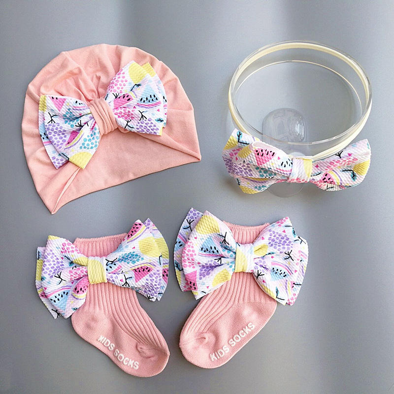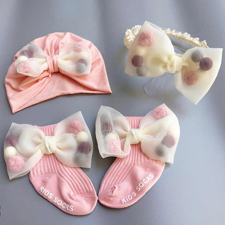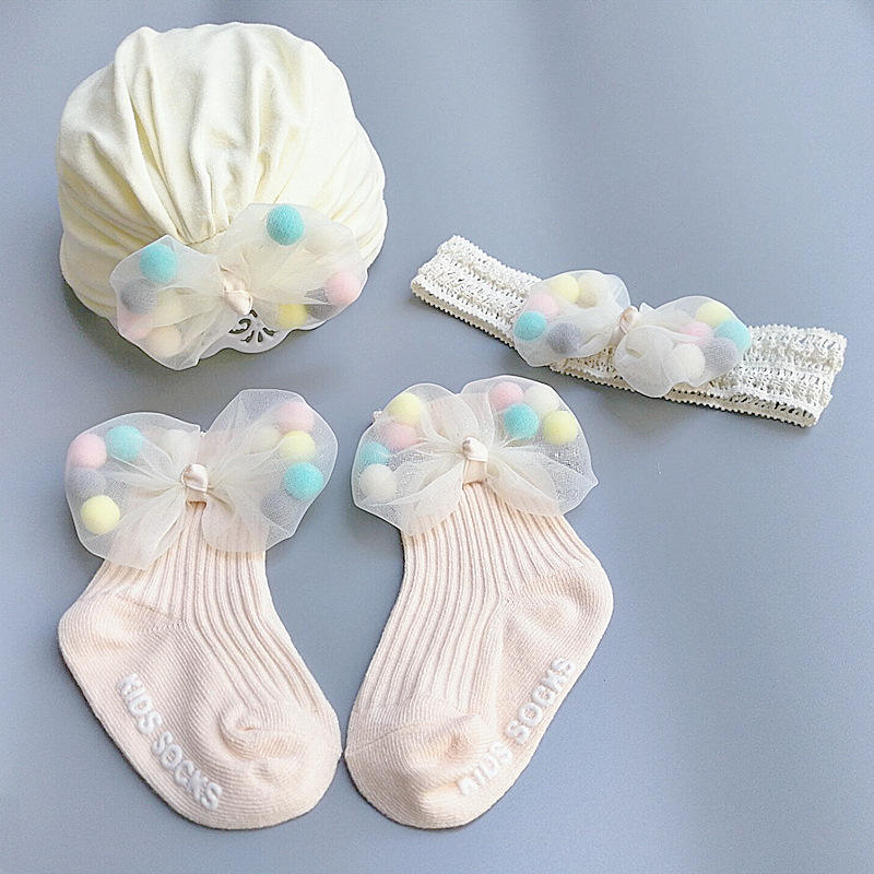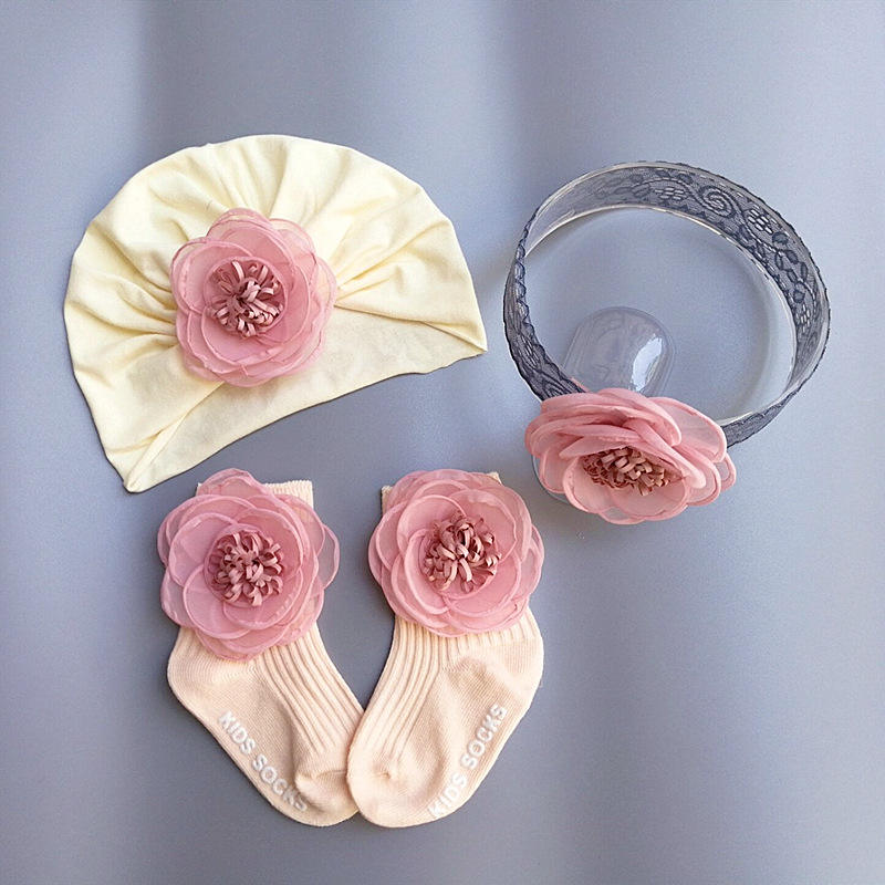 Bonita flor infantil Luna Llena primer bebé sombrero conjunto princesa accesorios para el cabello calcetines con flores para regalo de cumpleaños