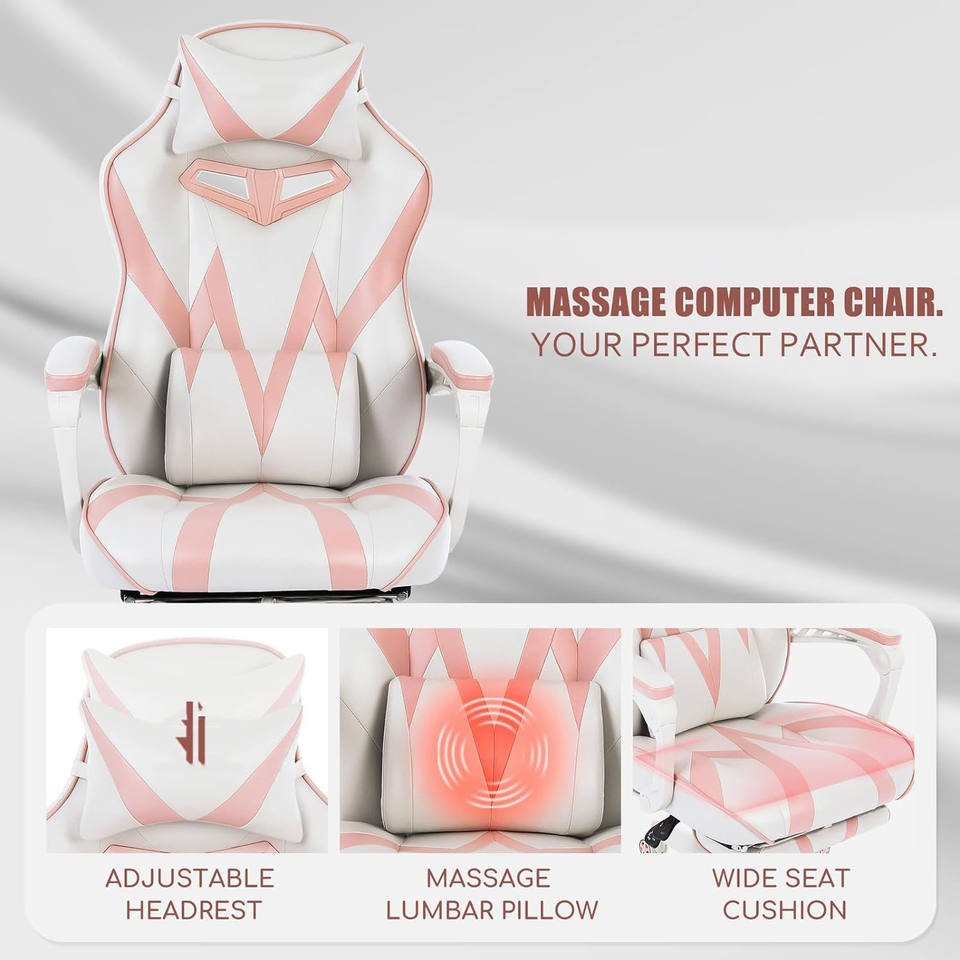 Linda Silla de Juego Ergonómica para Computadora, Silla de Juego Rosa Encantadora de Estilo Europeo con Reposapiés para Niña