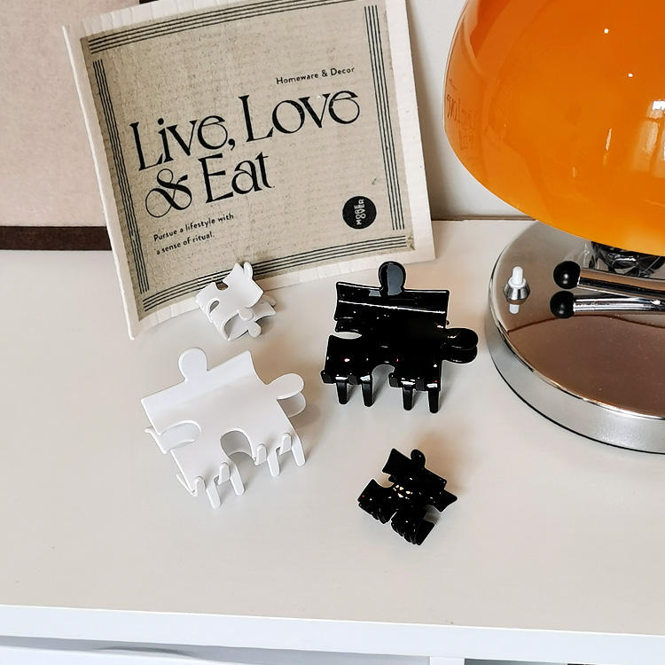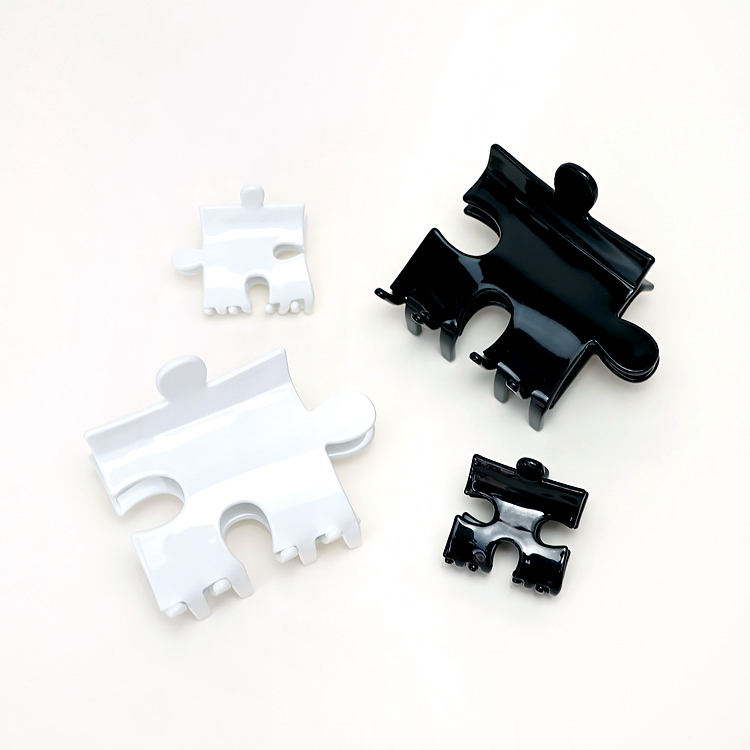 Pinza de Pelo Unisex de Diseño Hueco con Lentejuelas y Diamantes de Imitación, Personalizable con Logotipo, de Acetato de Alta Calidad, Blanca y Negra