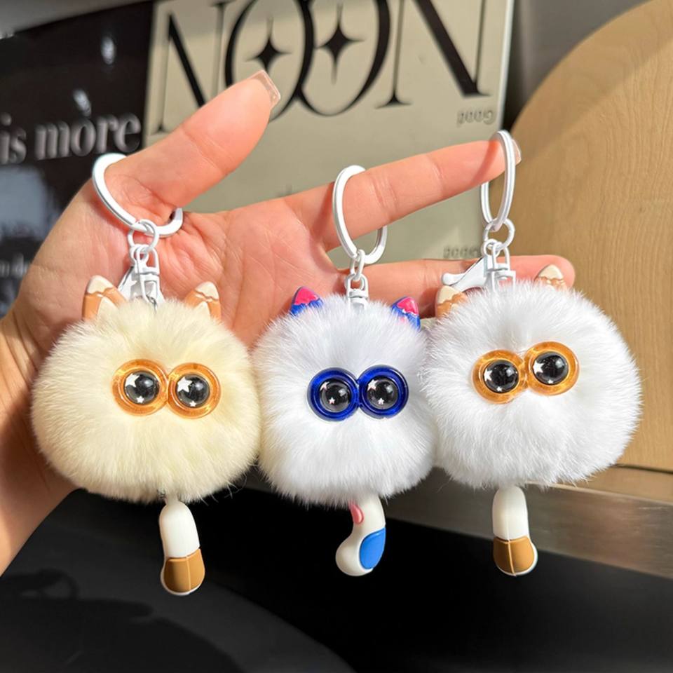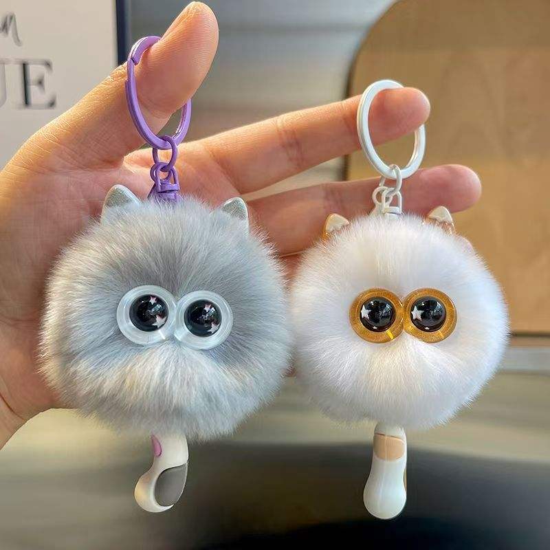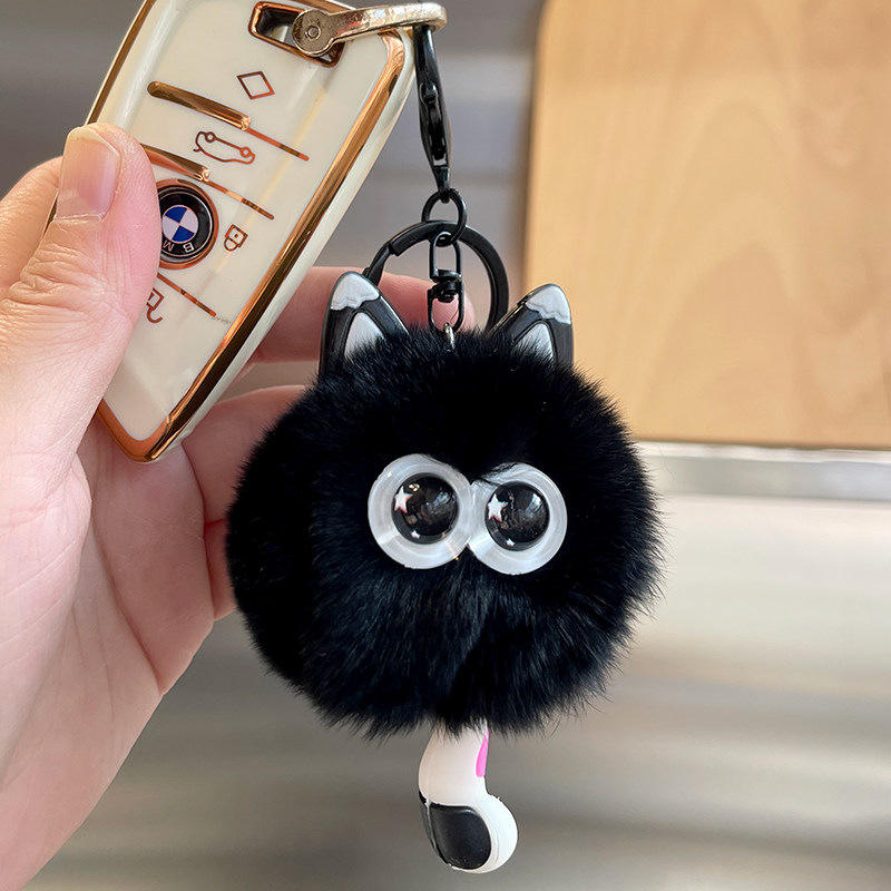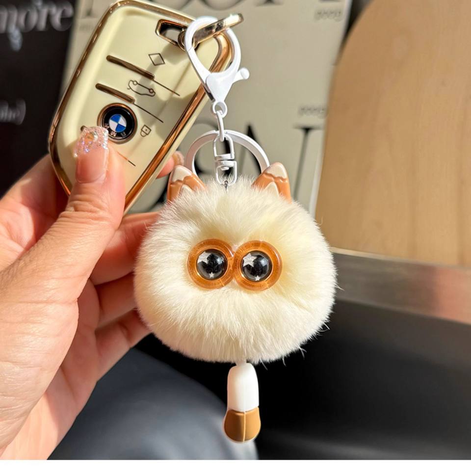 Lindo Llavero de Peluche Portátil con Pompón de Piel Sintética de Conejo (Imitación Nutria), Suave y Ecológico, para Coche, Colgante para Bolso de Mujer