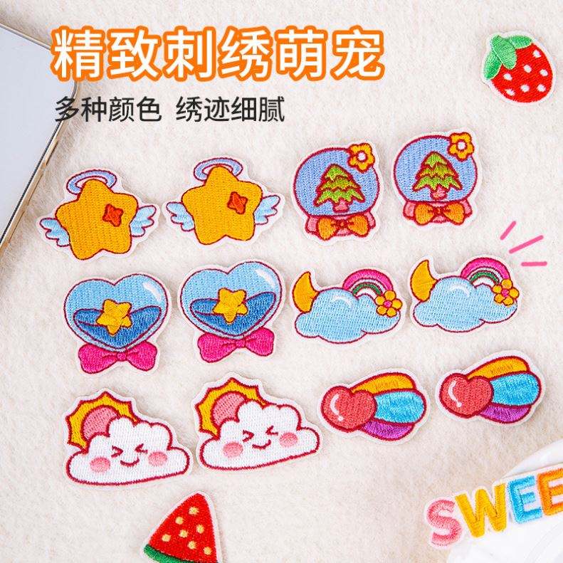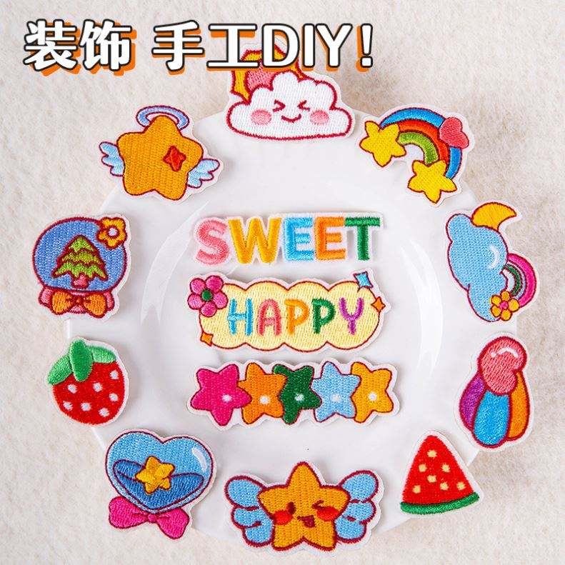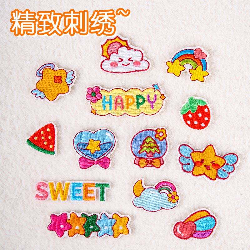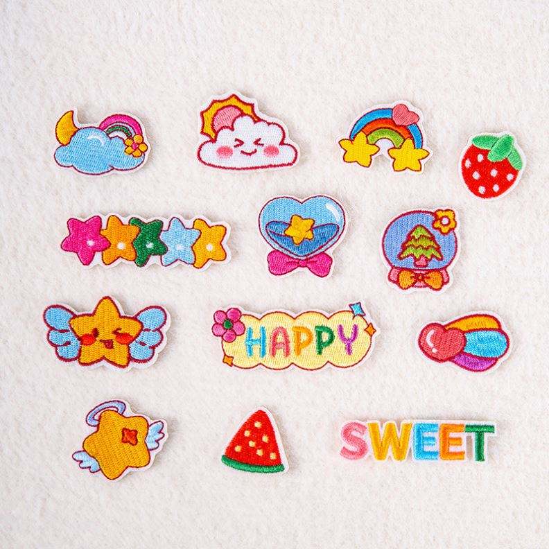 Parche Termoadhesivo/Adhesivo de Bordado con Diseño de Arcoíris, Nube, Estrella, Sandía Dulce y Feliz para Decoración de Bolsos, Ropa y Sombreros
