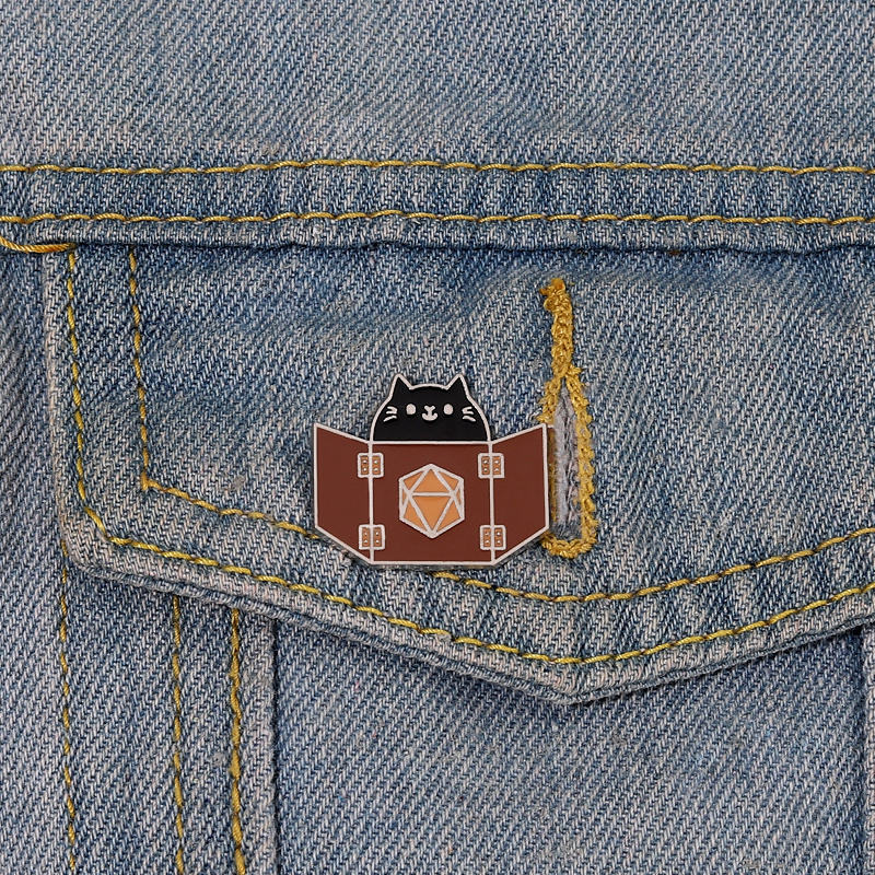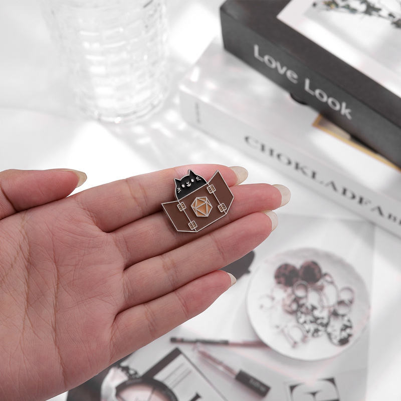 Lindo gatito broche letras inglesas dados de 12 caras insignia de Metal accesorios pequeños alfileres de solapa al por mayor para mochilas Pin de mochila