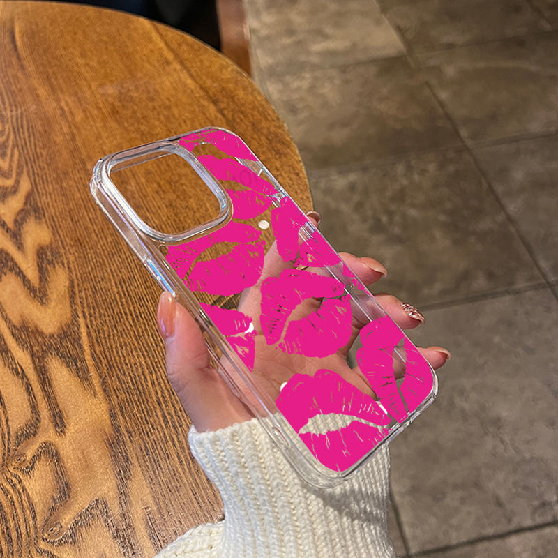 Cute Lady Kiss Lips Print Design Clear PC TPU Funda de teléfono a prueba de golpes para iPhone 14 Pro Max 13 Funda dura