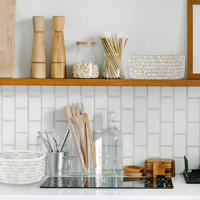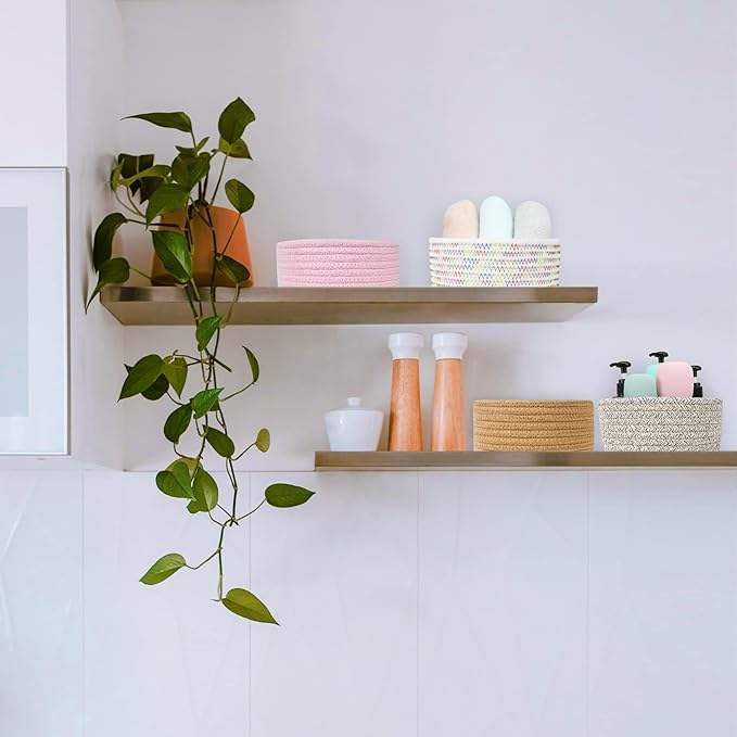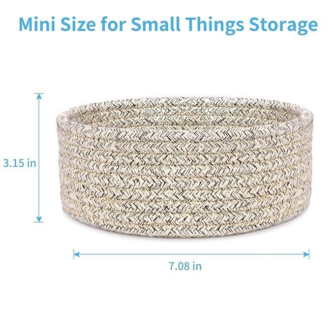 Cesta Redonda Decorativa de Cuerda de Algodón Tejida, Mini Cesta de Almacenamiento para Juguetes, Calcetines y Regalos para Cuarto de Niños