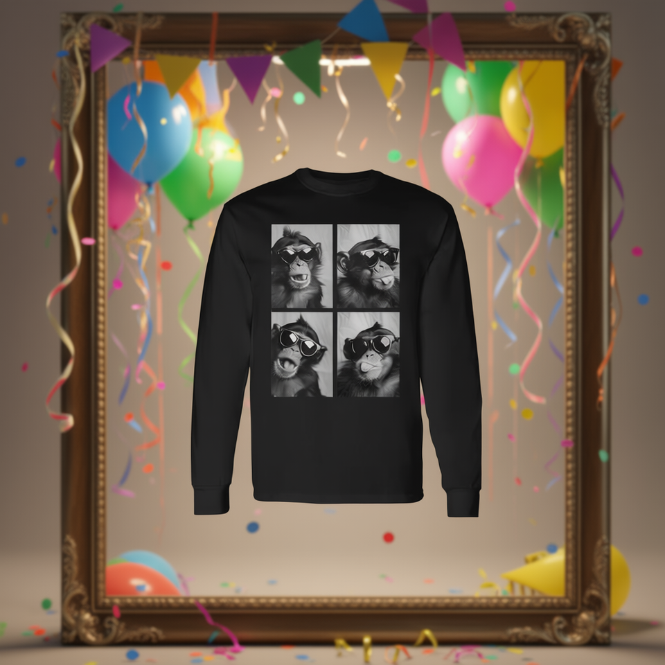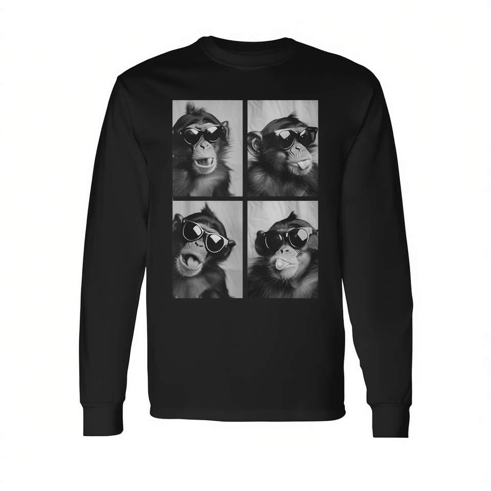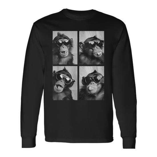 Camiseta de manga larga con estampado digital de monos lindos con gafas de sol, cuello redondo, unisex, para adultos, Photo Booth
