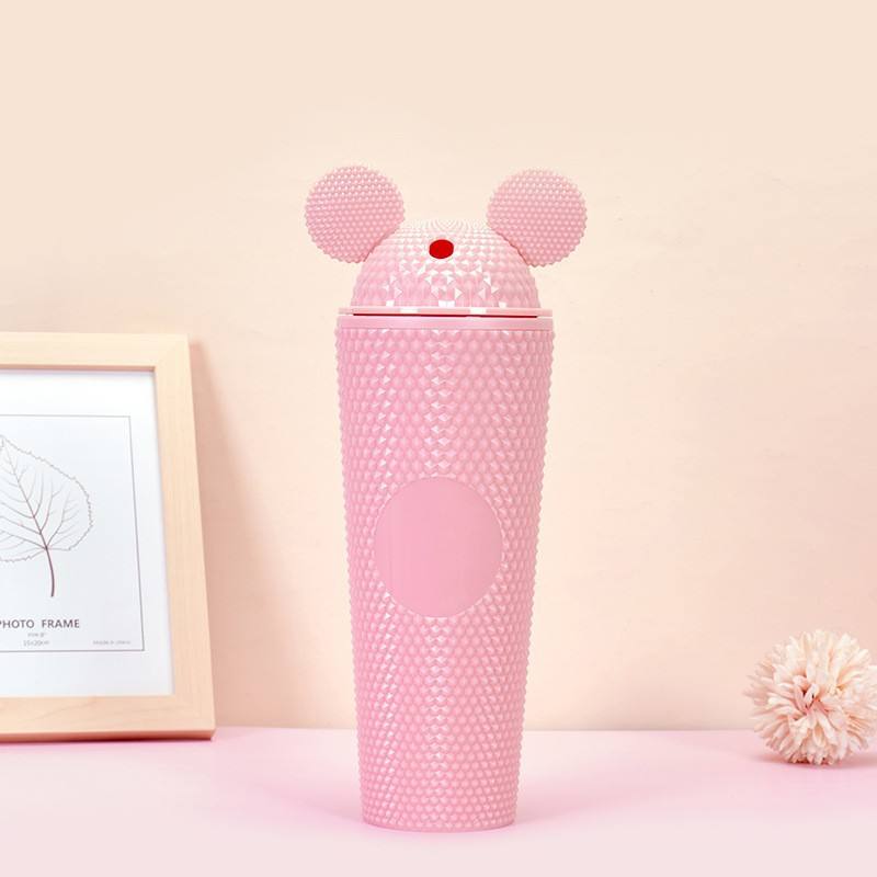 Vaso Reutilizable de Plástico de Doble Pared con Diseño de Mickey Mouse de 710 ml, con Pajita y Tapa