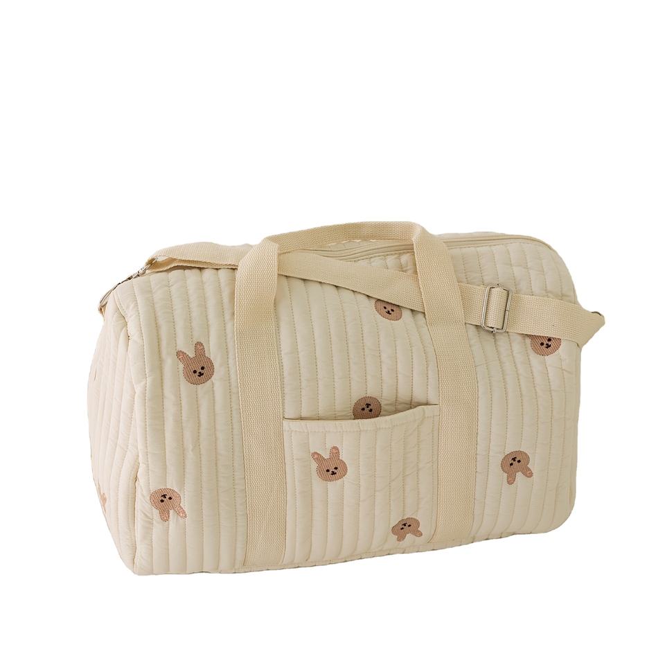 Lindo Bolso de Maternidad Grande OEM para Mamá, Pañalera de Hombro de Algodón Bordado, Bolso Tote para Recién Nacido con Diseño de Osito de Peluche