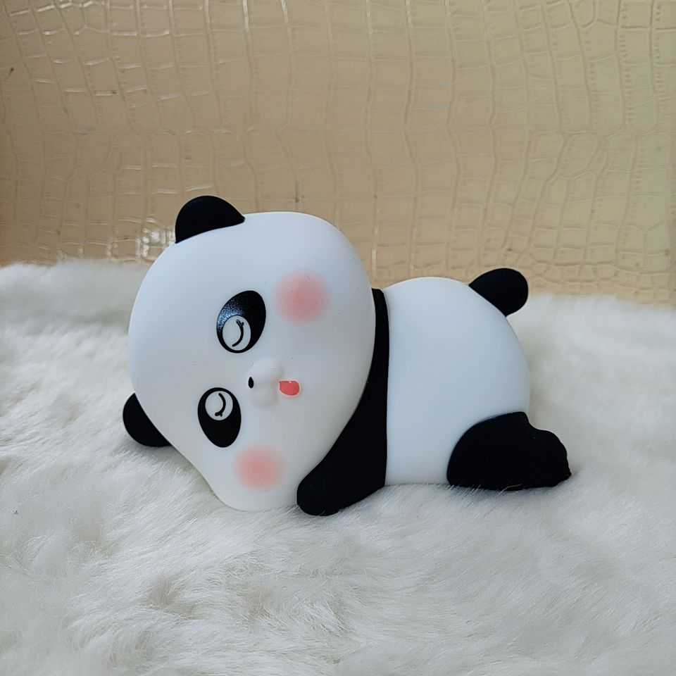 Linda Lámpara Nocturna LED de Panda, Lámpara Infantil de Silicona Suave, Lámpara de Noche Recargable por USB con Cambio Automático de Color