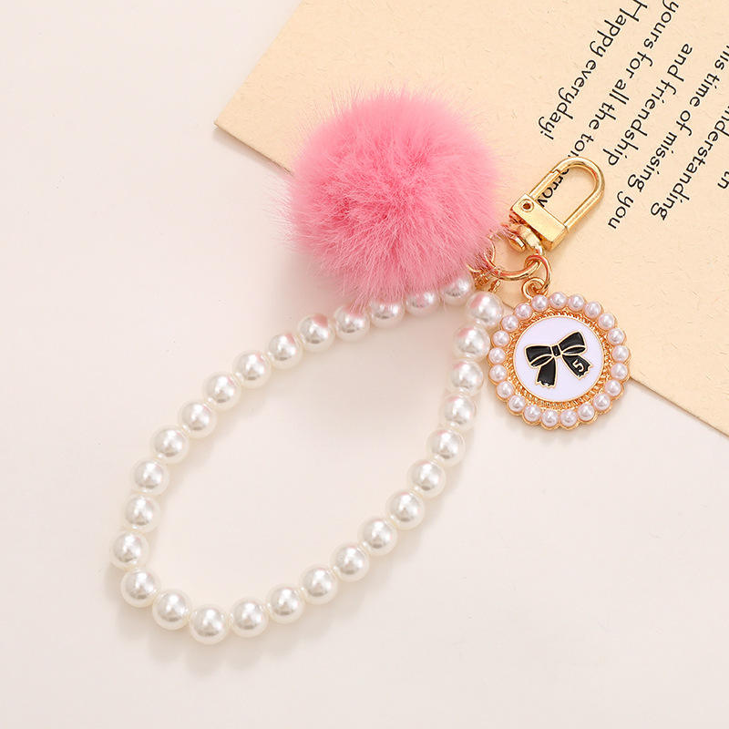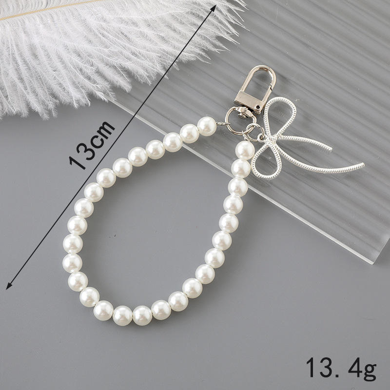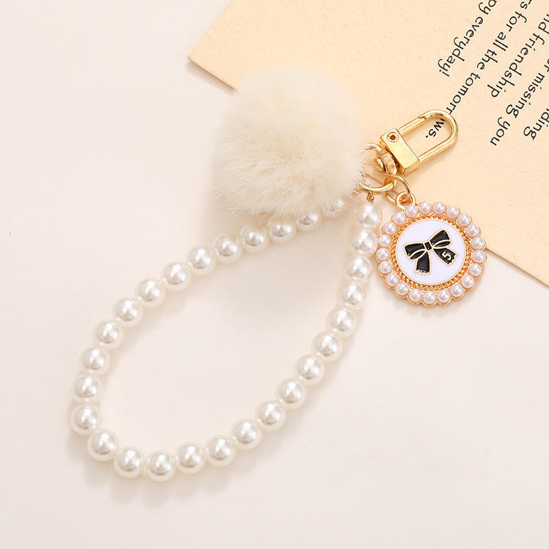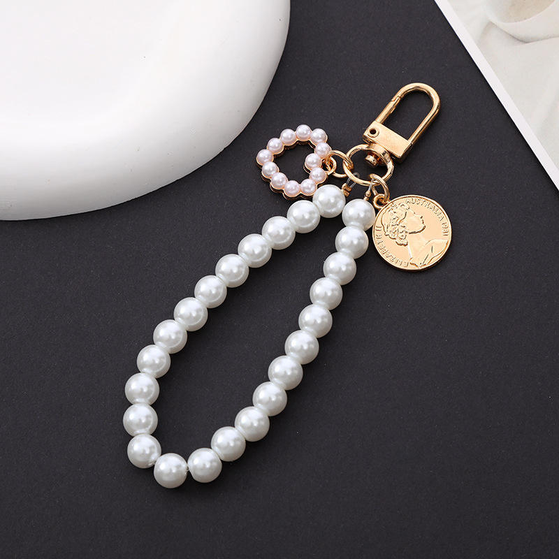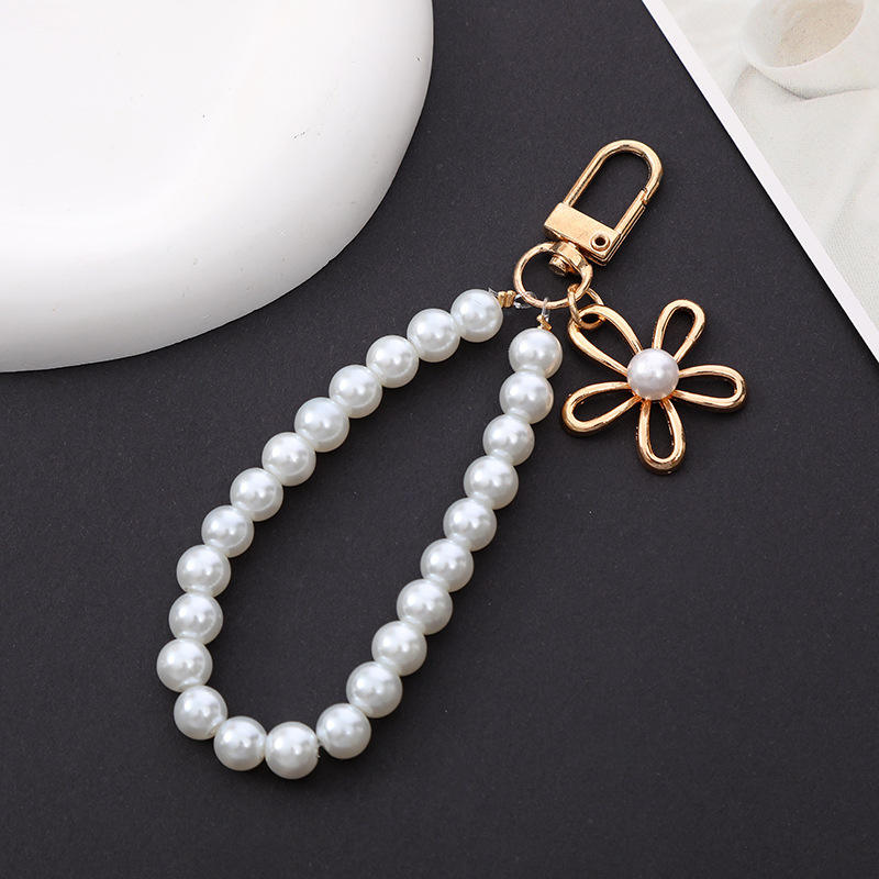 Llavero con perla en forma de flor, joyería de lujo para mujer; colgante de cuentas de perla y concha, charm para teléfono/bolso, accesorio para llaves de coche