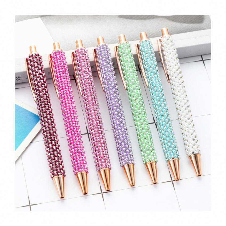 Bolígrafos con Botón de Perla - Bolígrafos Metálicos Multicolor para Estudiantes y Regalos Promocionales