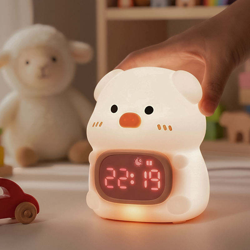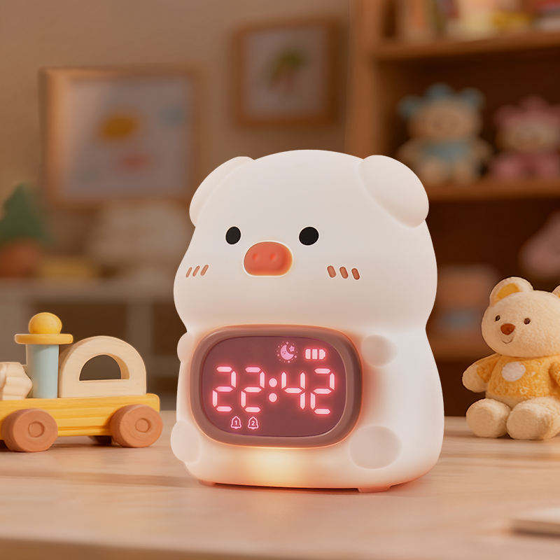 palabras clave:Luz de noche de silicona con forma de cerdito y despertador.
