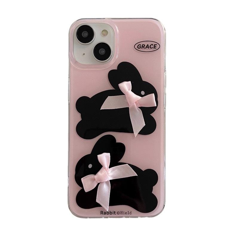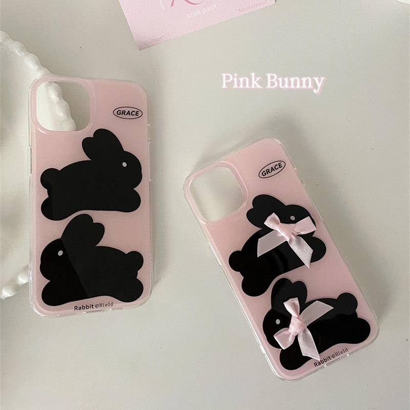 Funda para Teléfono con Lazo Rosa y Conejito, Doble Capa Antigolpes para iPhone 16 Pro Max 15 14 13 12, Estética Dulce para Chicas