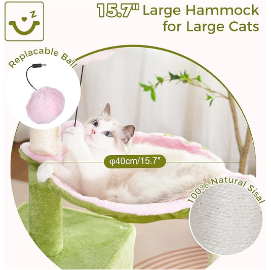 Bonito condominio de torre de árbol de gato de flores rosas con hamaca de poste rascador perca de flores extraíble y bola interactiva para gatos de interior
