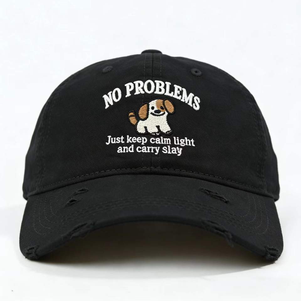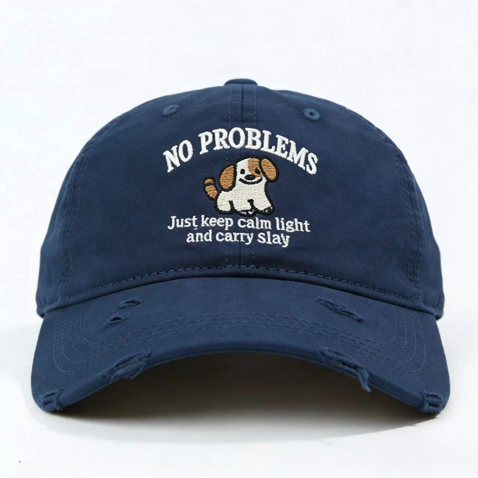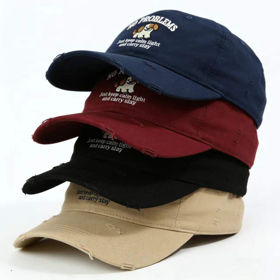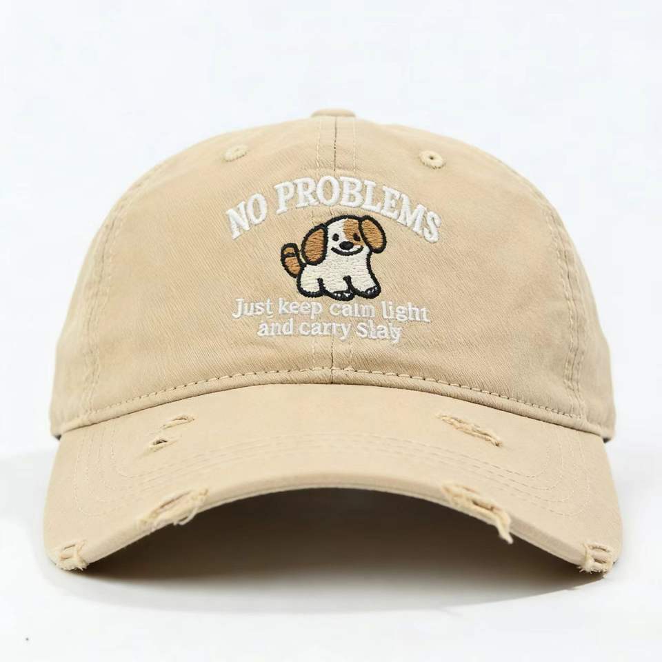 Gorra de Béisbol con Bordado de Cachorro Adorable, Estilo Desgastado, de Algodón Lavado, Ajustable, para Deportes Casuales al Aire Libre