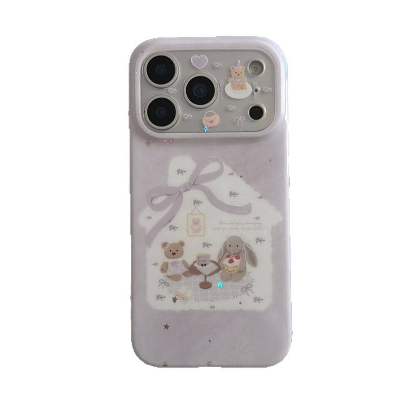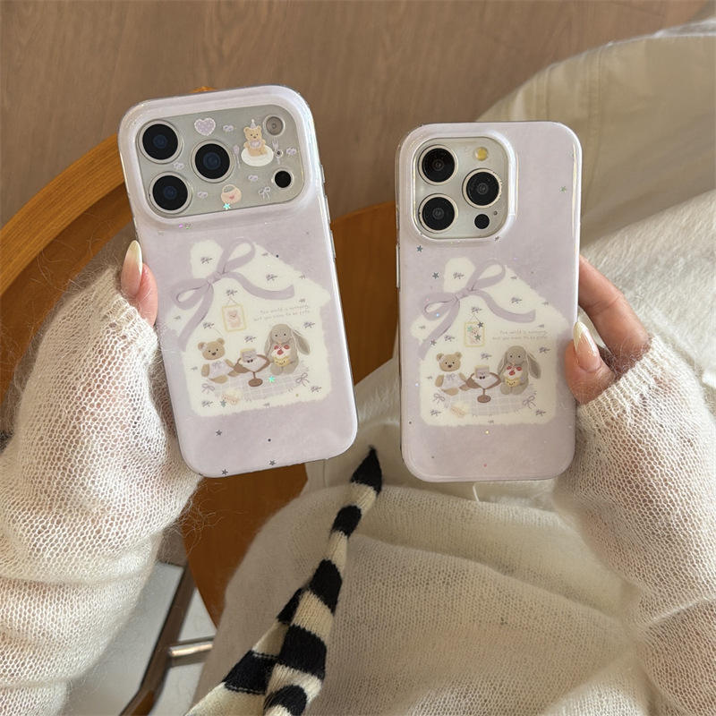 Funda con Patrón de Conejo y Lazo Morado para iPhone 17 Pro Max 16 15 14, Doble Capa de Protección