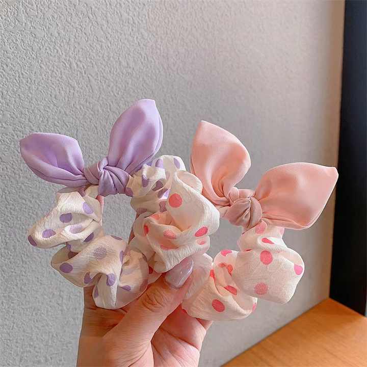 Cute Rabbit Ear Scrunchies para niños Ear Dot Hair Ties C Tie Twist Bow Wire Girls Hair Band para niños