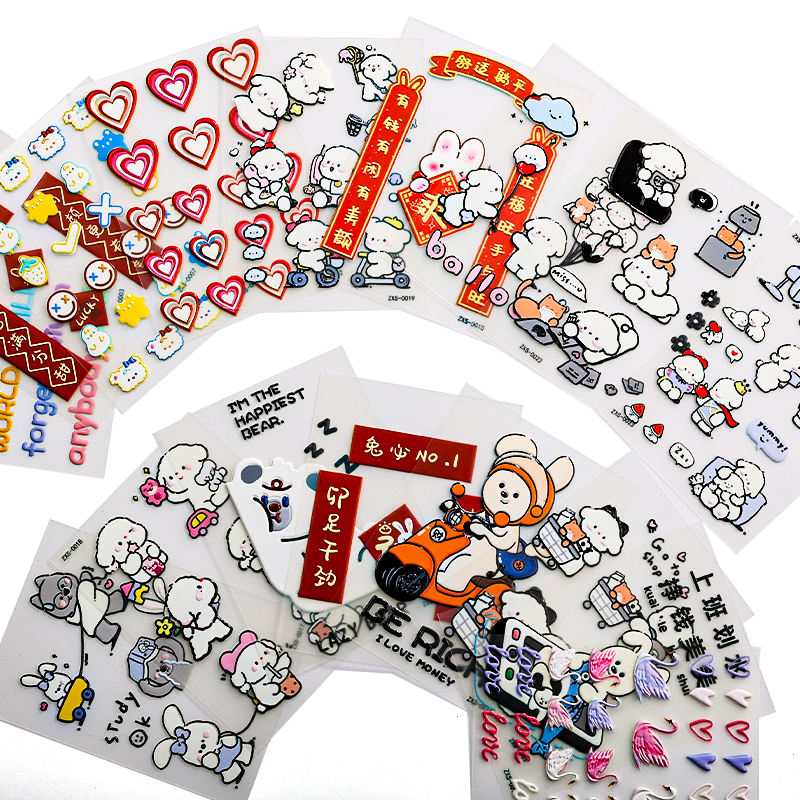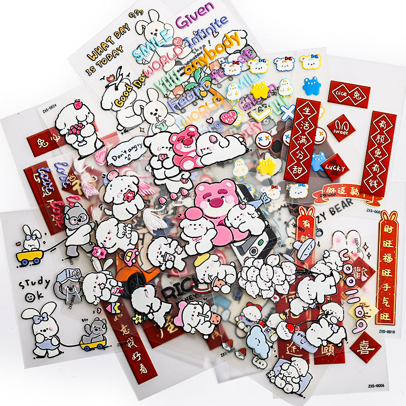 Pegatinas decorativas de bendición de Año Nuevo de conejo lindo, calcomanías de decoración Rojas festivas
