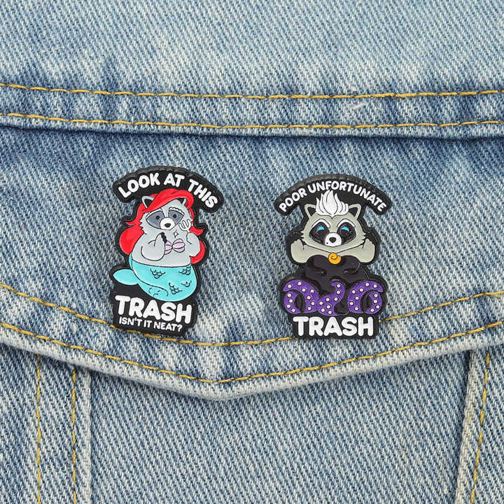 Pin de Esmalte con Diseño de Mapache Sirena, Inspirado en el Anime, con Temática de Basura, Broche, Insignia de Solapa, Joyería al por Mayor