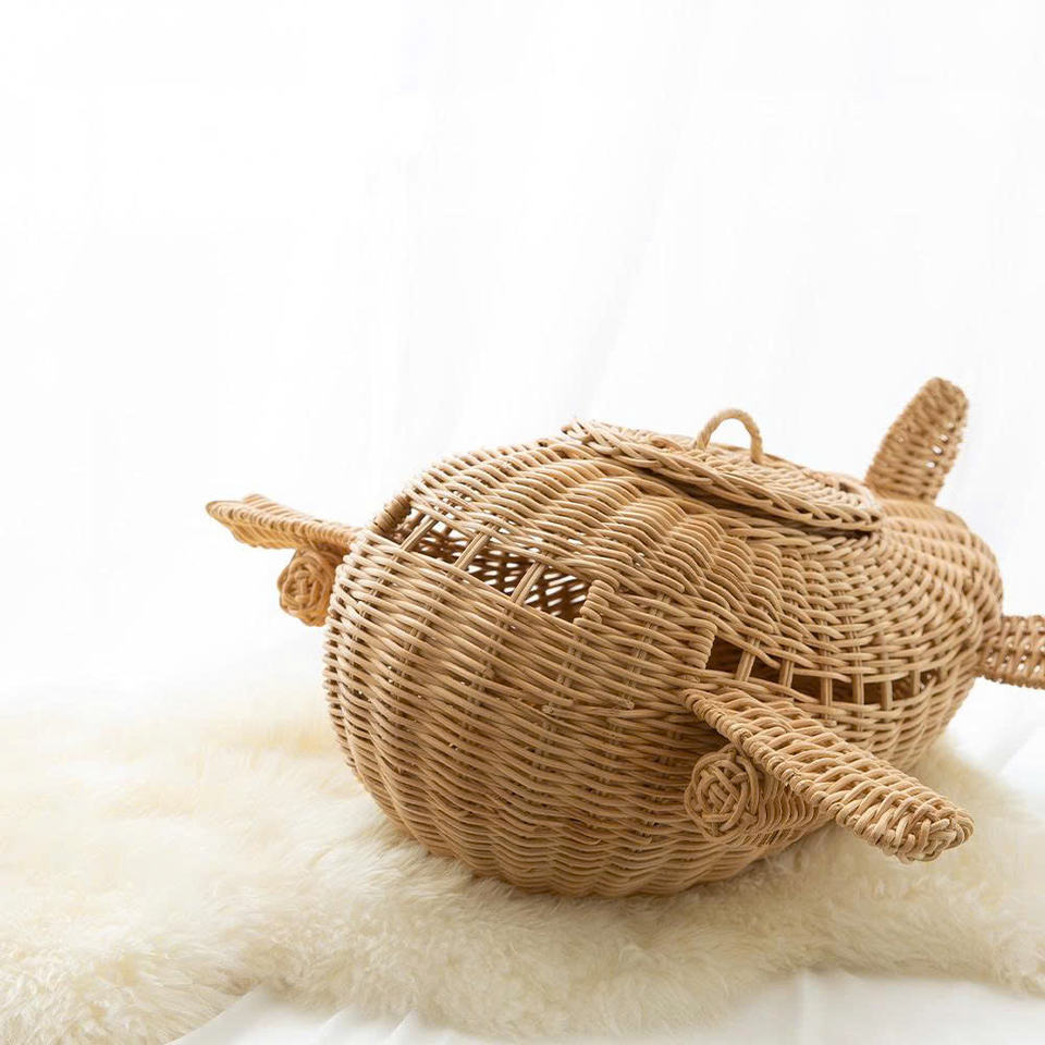 Cesta de Almacenamiento de Mimbre con Forma de Avión, Cesta de Almacenamiento Divertida para Habitación Infantil, Almacenamiento de Juguetes y Decoración de Guardería