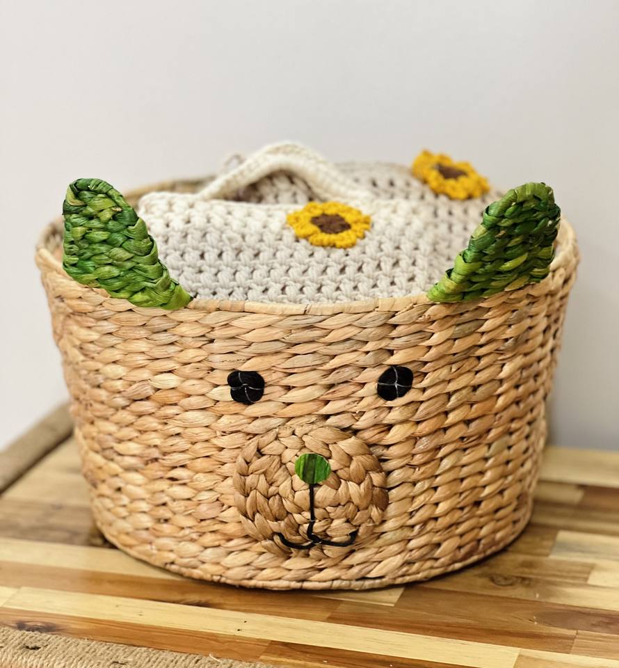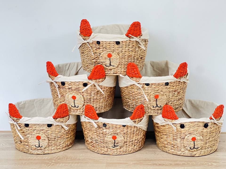 Cesta de almacenamiento multifunción de ratán con cara de animal bonita y ecológica moderna, estilo circular para decoración de habitación de niños
