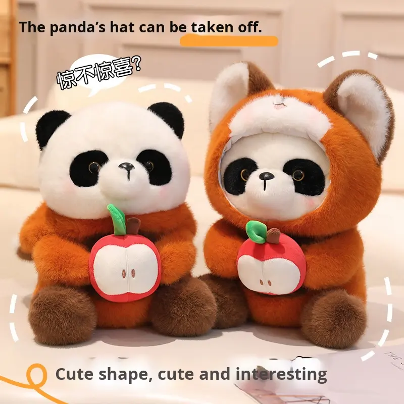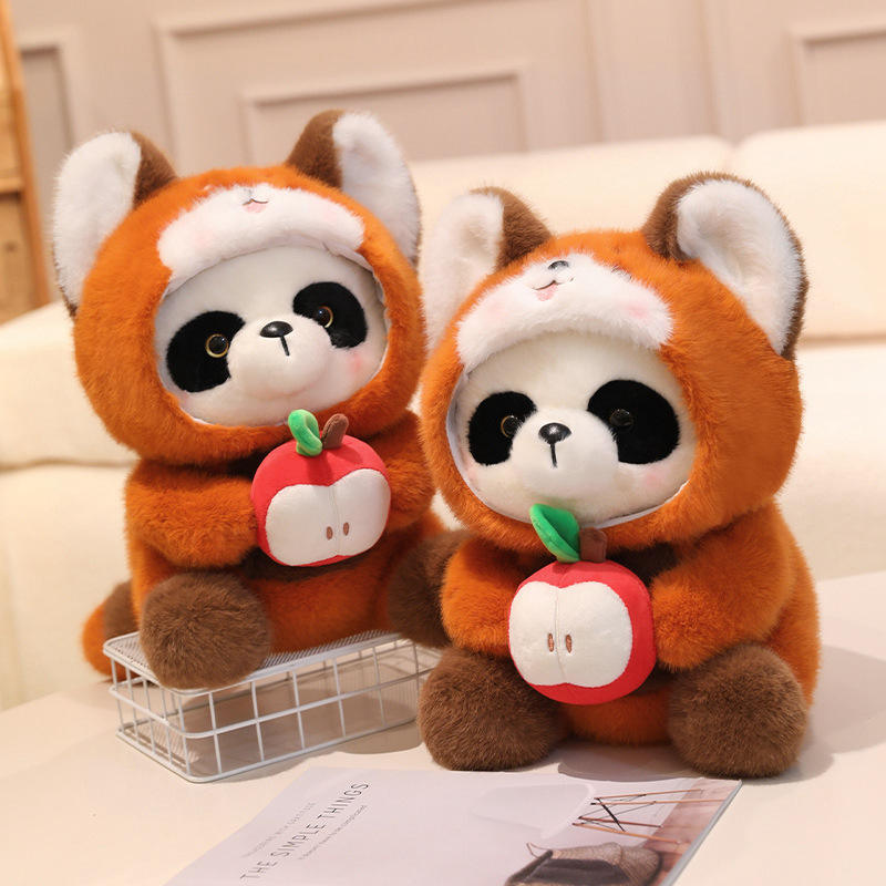 Lindo realista Apple mapache Panda muñeca Animal de peluche de juguete transformación pequeño Panda de peluche de juguete para niños regalo