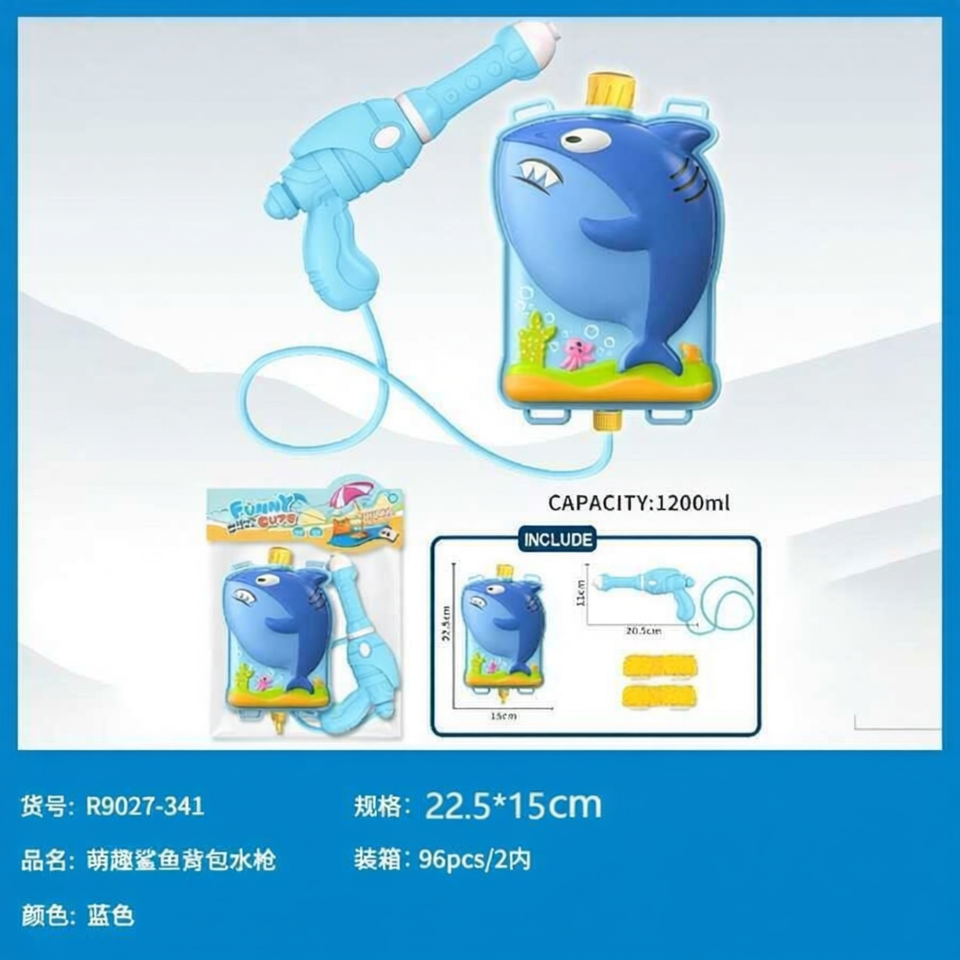 Mochila con forma de tiburón, pistola de agua de 1200 ml, juguete de plástico para exteriores para niños de 5 a 7 años