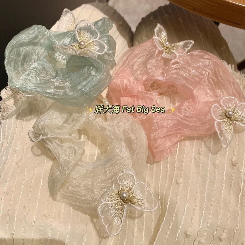 Lazos de tul para el pelo, accesorios para el cabello de organza, perlas móviles 3D, mariposa, scrunchies