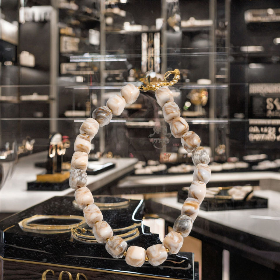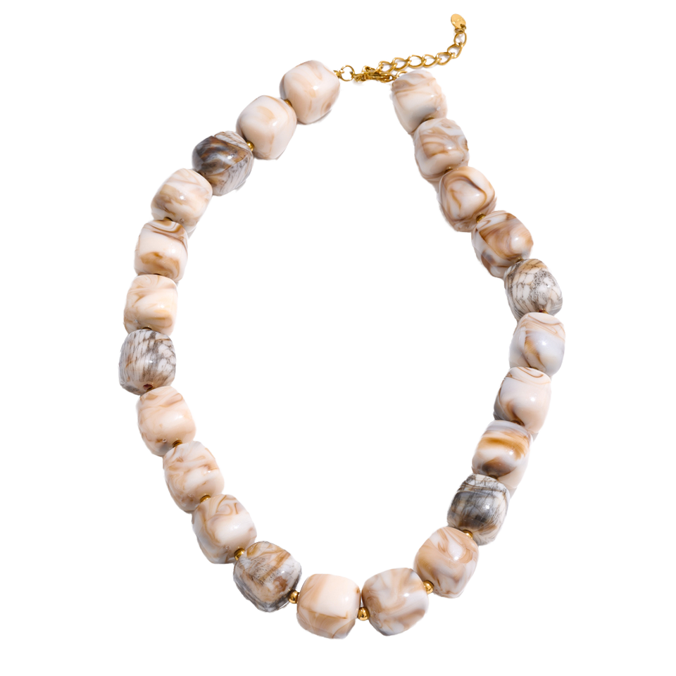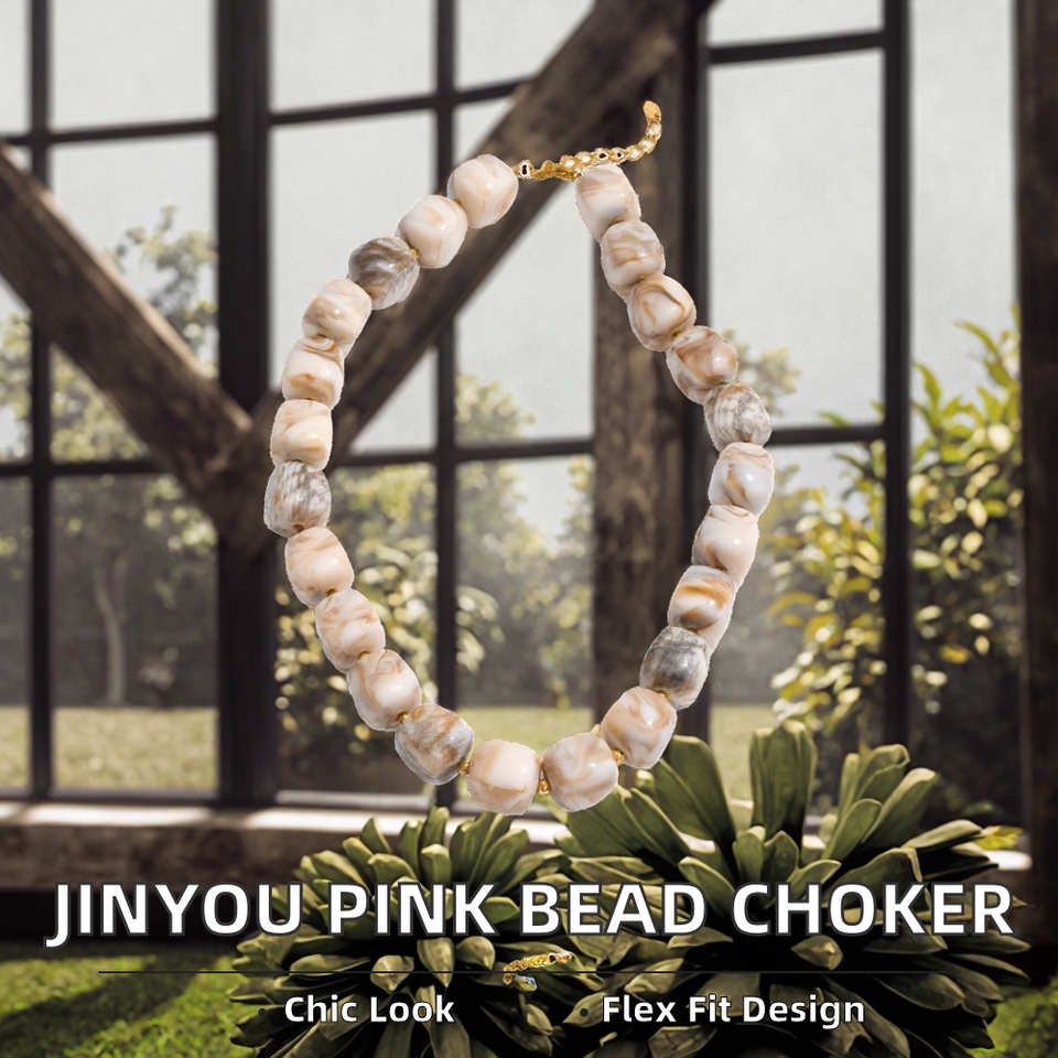 Collares Ajustables con Forma de Luna, Bonitos y Modernos, con Cuentas Acrílicas de Textura Mármol Rosa Fresa para Fiestas