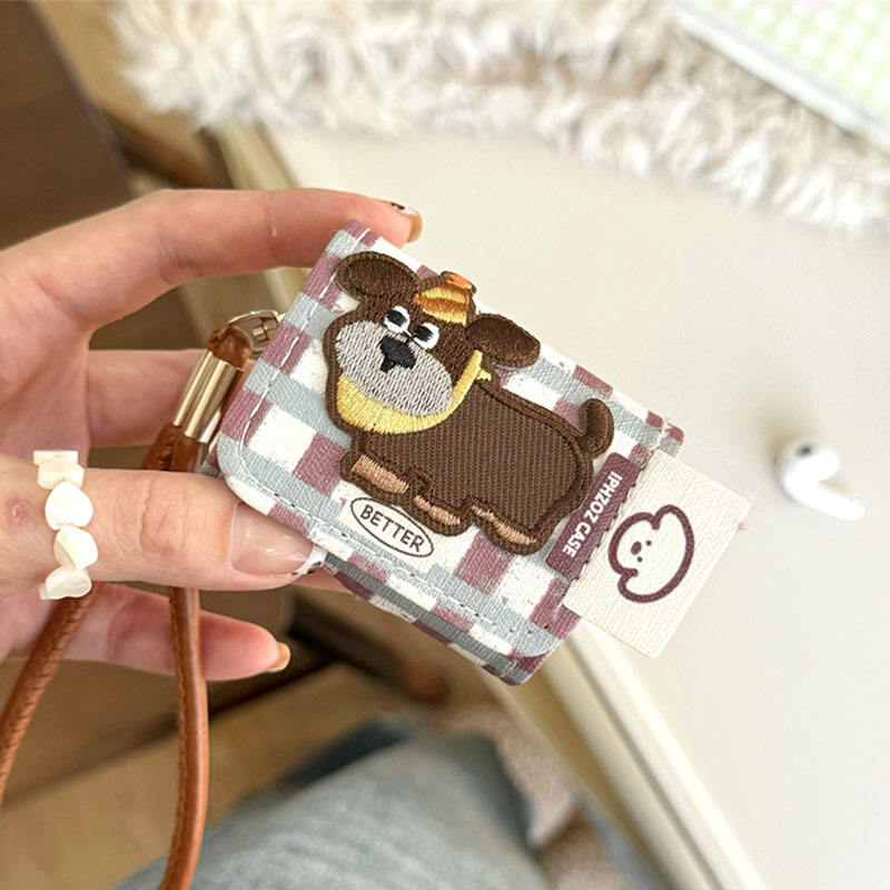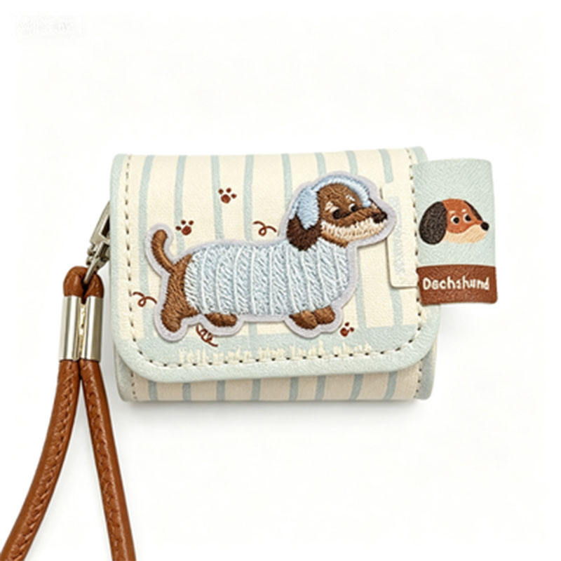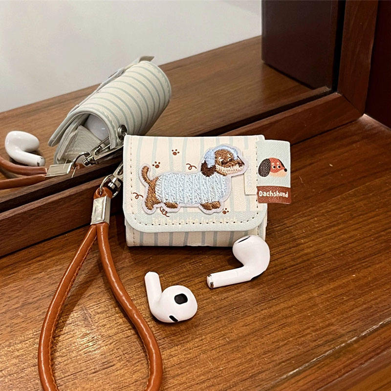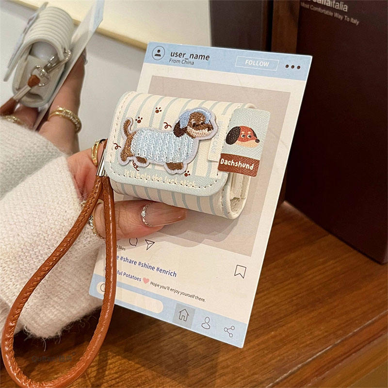 Funda Protectora de Cuero PU con Cordón, Impermeable y Resistente a Golpes, con Bordado de Lindo Perro Salchicha a Rayas