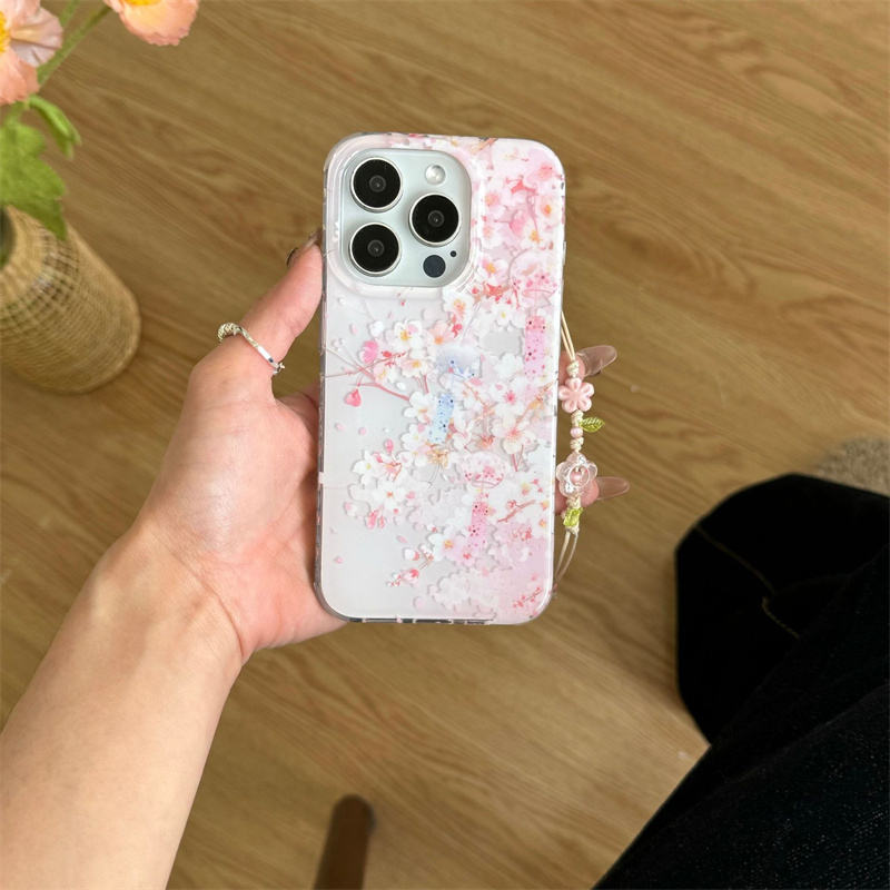 Lindo dulce Sakura Wind Chime funda de teléfono para iPhone 16 15 14 13 Pro Max con encantador colgante de flores 3D chica funda protectora trasera