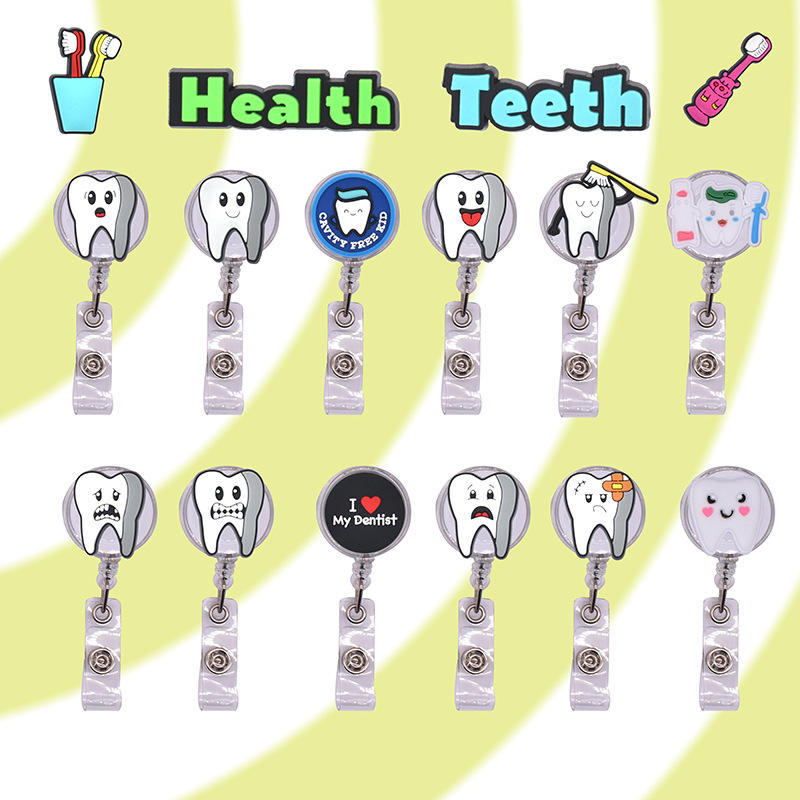 Porta Tarjetas de Identificación con Forma de Dientes, Retráctil, para Estudiantes, Dentistas y Enfermeras