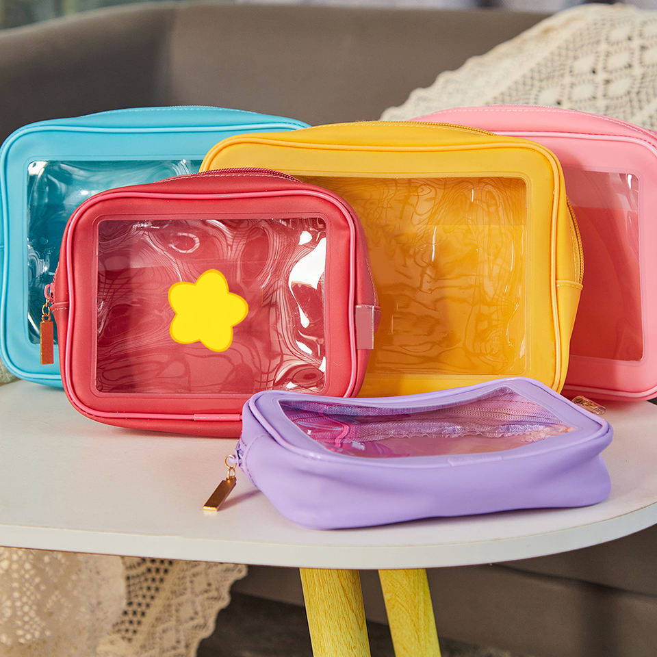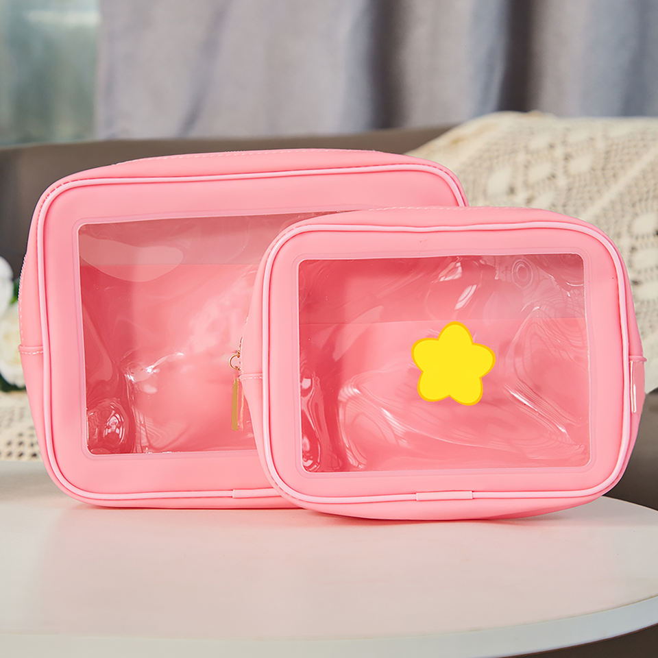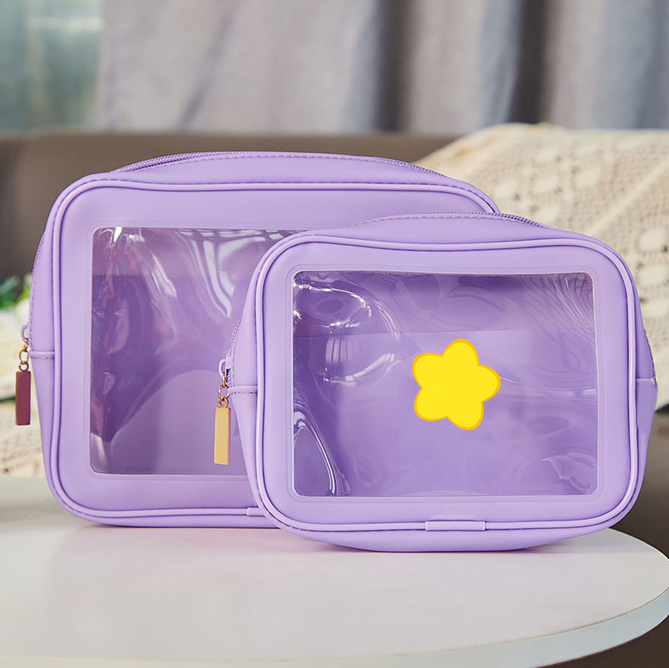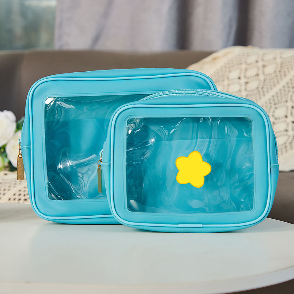 Bolsa DE ASEO transparente bonita, paquete de 2, bolsa de maquillaje impermeable aprobada por el estadio TSA, bolsa de cosméticos transparente