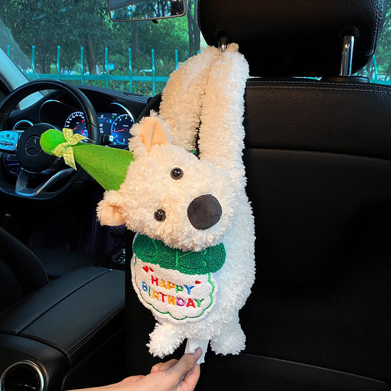 Cute West Side Dog Papertoy, reposabrazos colgante, caja de pañuelos, marionetas de papel, Kits interiores para coche