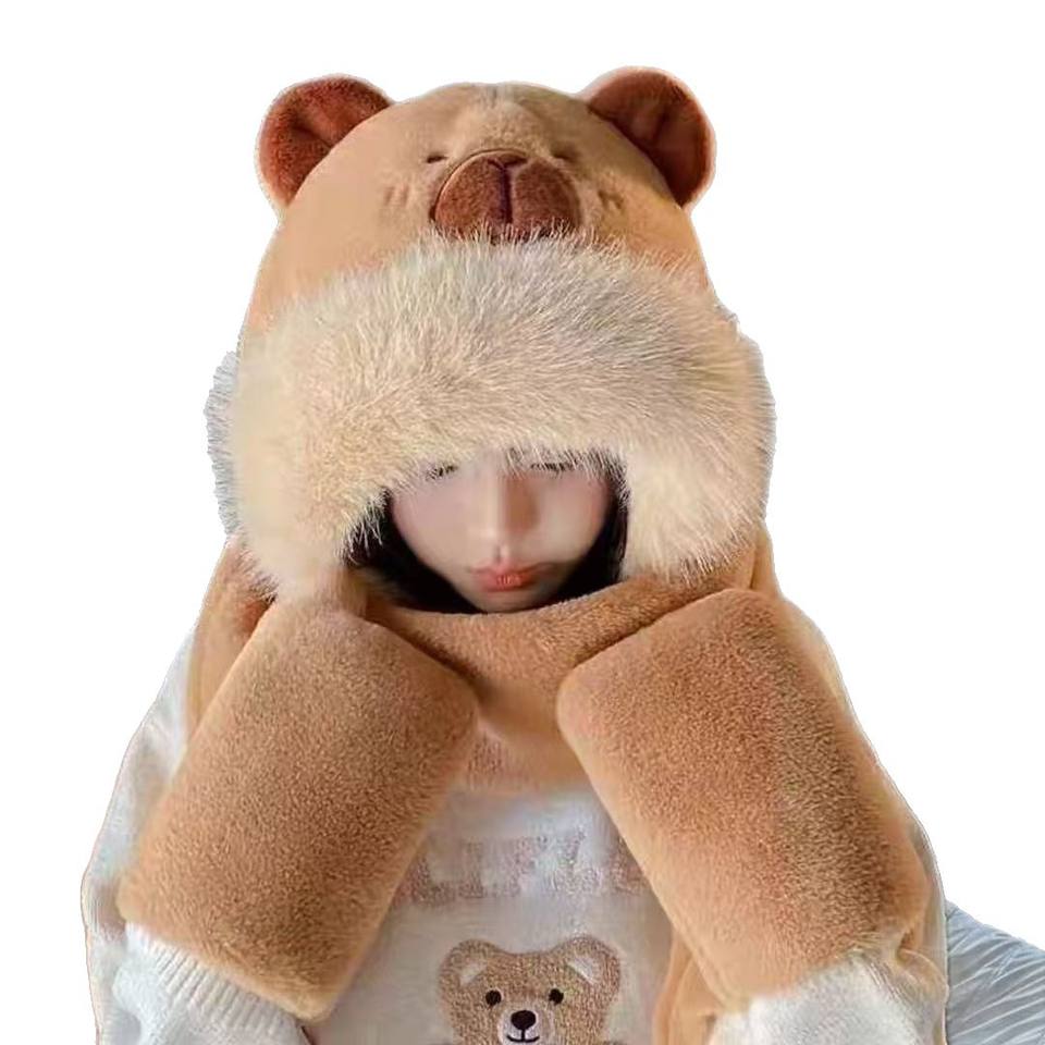 Lindo gorro de lana para invierno con orejeras para niñas, circunferencia de cabeza ajustable, protector de cuello cálido, pasamontañas plegable