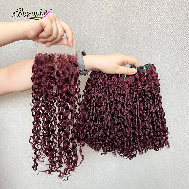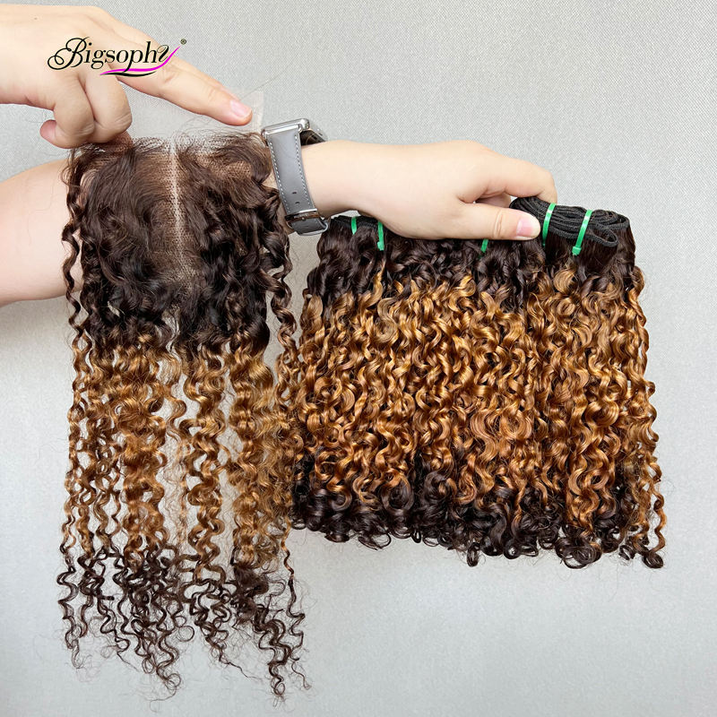 Cierre de Cabello con Rizos Pixie SDD con Cutícula Alineada, de 12 a 20 Pulgadas, 3 Tonos de Color, Cierre de Encaje Transparente 4x4