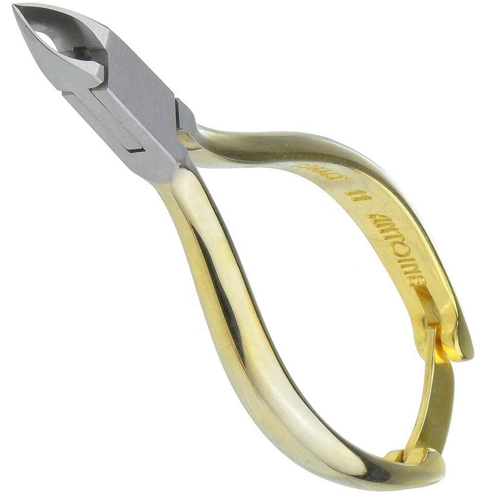 Pinza para cutículas, mango dorado con candado, calidad profesional, extra afilada, hecha con acero inoxidable, disponible en mordaza de 12 a Mordaza completa.