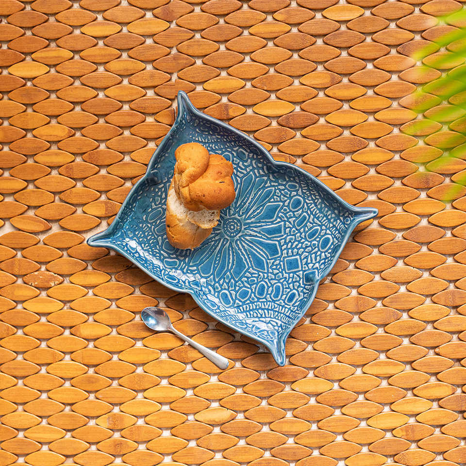 Plato de cerámica pintado a mano azul cian para bodas y festividades de Diwali