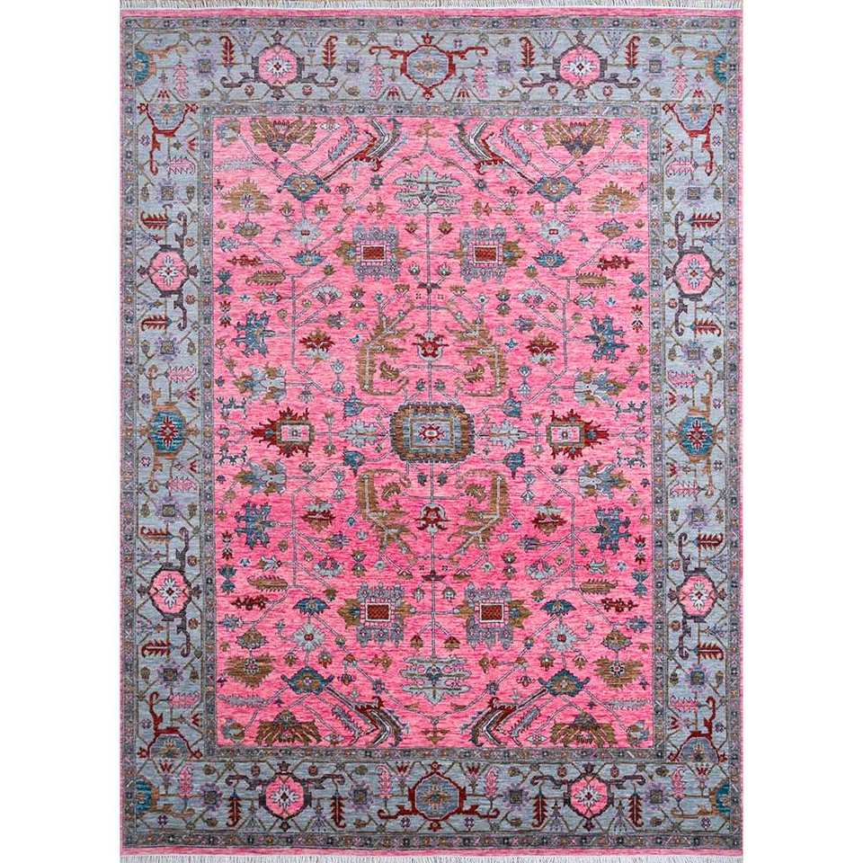 Alfombras de Lana Anudadas a Mano Cyanna 9x12, Rectangulares con Medallón Rosa y Morado, para Decoración de Sala de Estar - Modelo Skwl-259