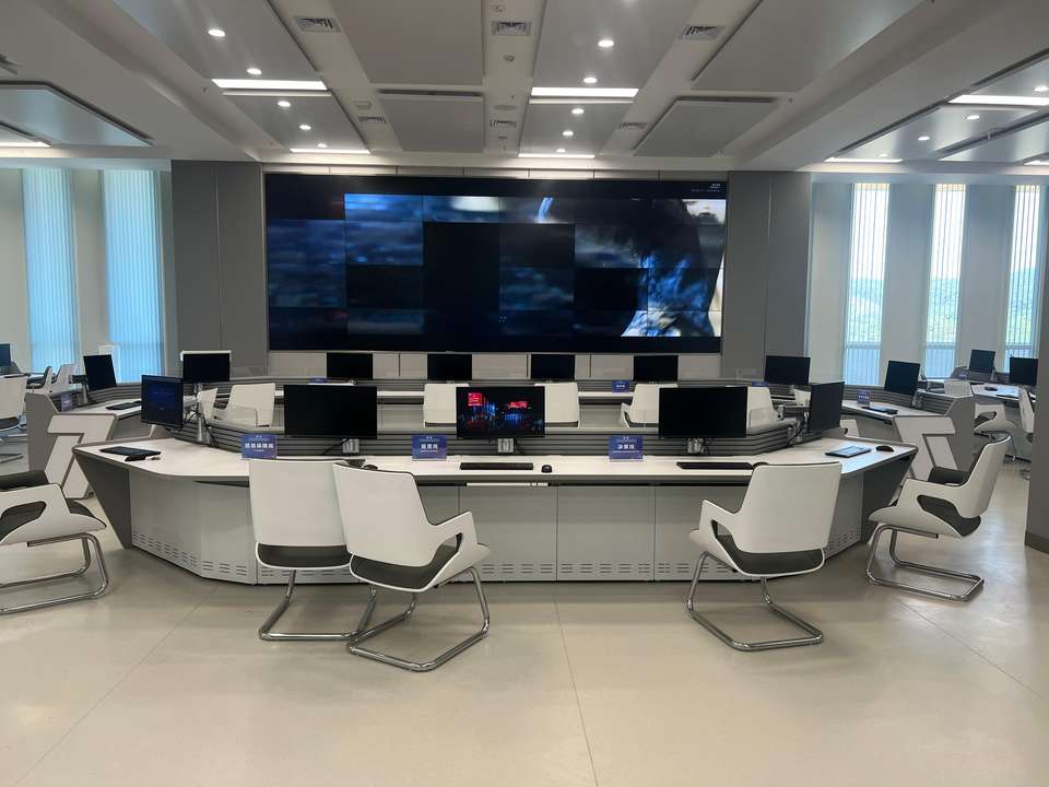 Sala de comando de seguridad cibernética Consola de despacho DCS Consola de sala de monitoreo de seguridad industrial