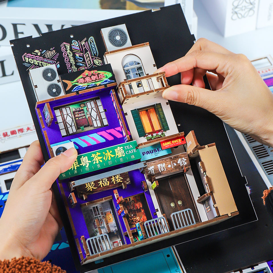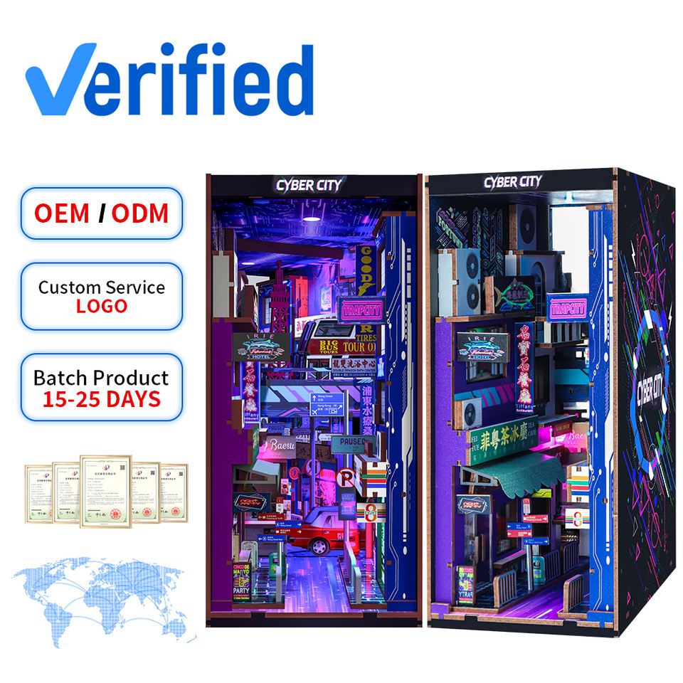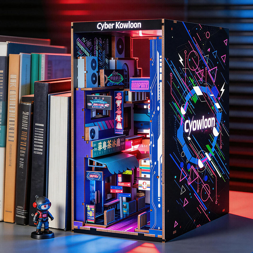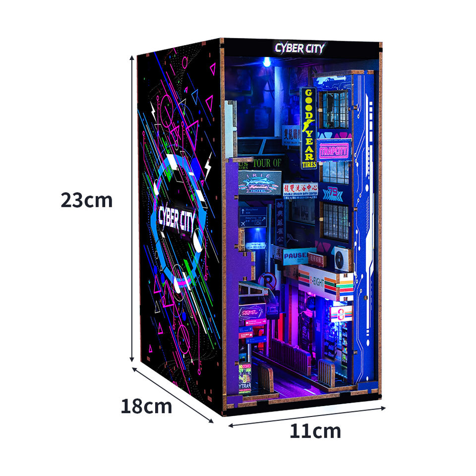 Kit de Bricolaje Cyberpunk para un Mini Rincón de Lectura, Rompecabezas 3D de Madera con Luces LED, Decoración Personalizada para Estantería, Regalo