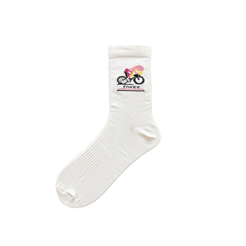 Cycling Crew Socks Nylon Mid Length Black White Unisex Sport Socks For Bike Riding