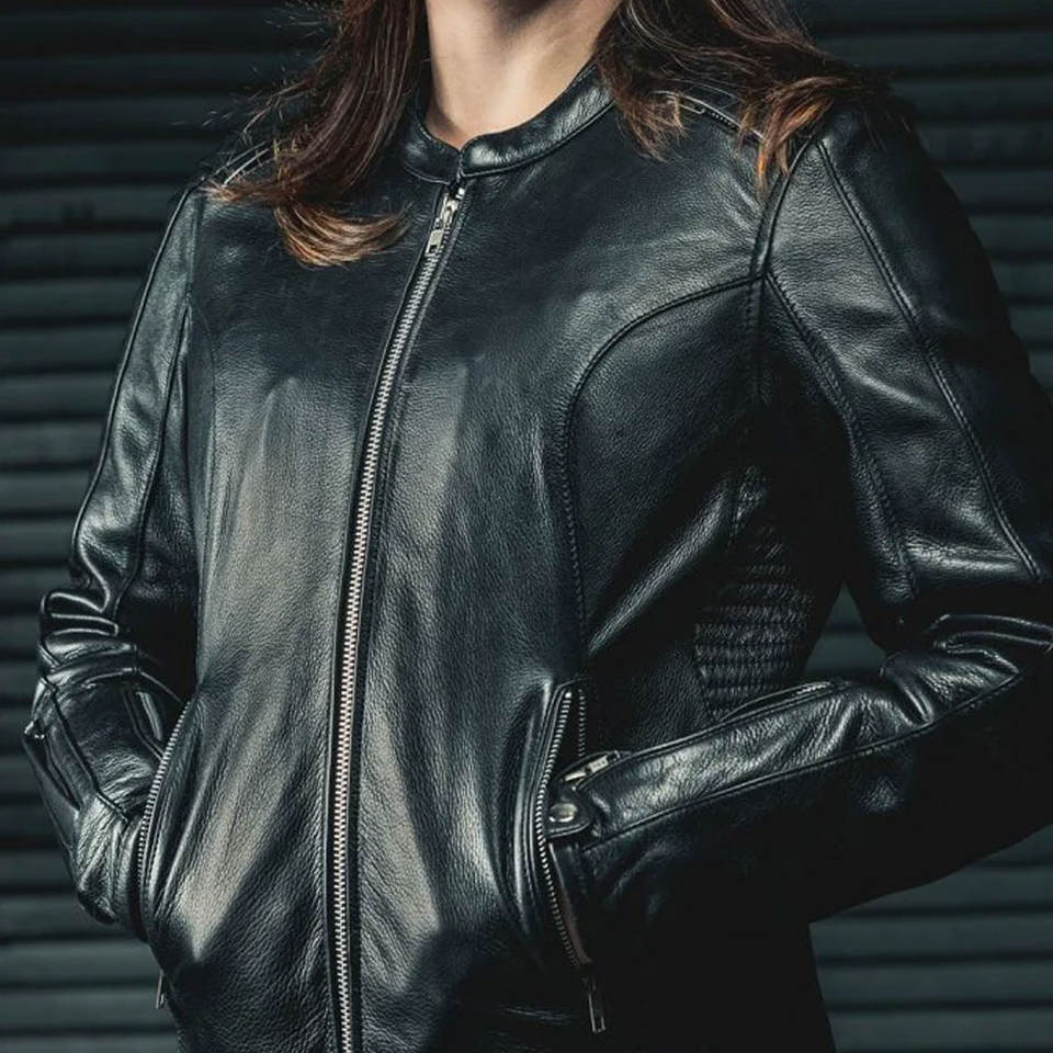 Nombre del producto:Chaqueta de cuero personalizada para mujer, estilo motociclista/carreras