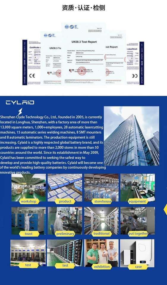 Paquete de batería de iones de litio Cylaid 51,2 V 100Ah Protección IP65 Almacenamiento de energía en el hogar Compatible con latas de 48V 100Ah 5KW 6KW 10KW