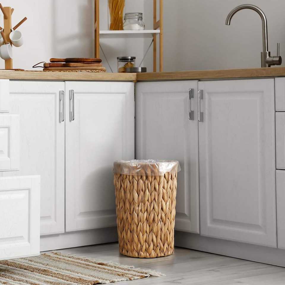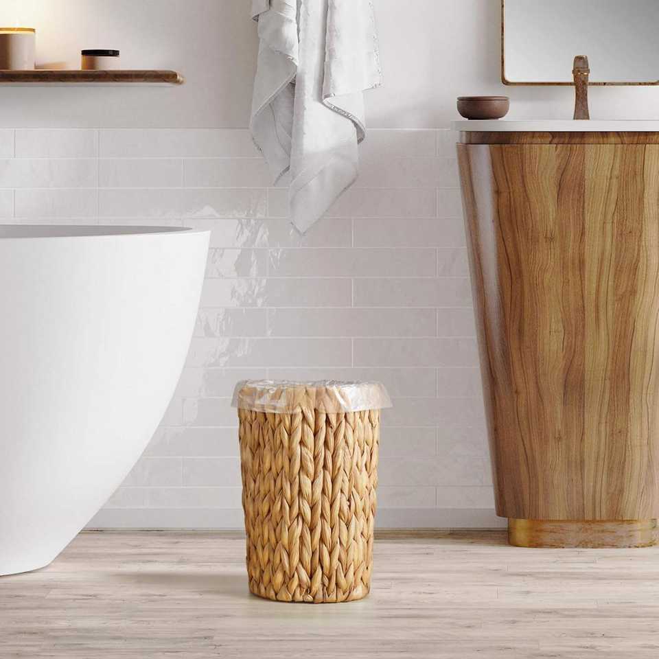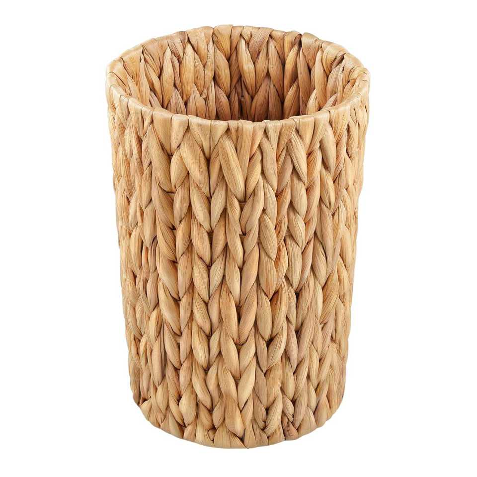 Cesto de Basura Cilíndrico de Mimbre para Baño o Dormitorio, Pequeño, Tejido con Jacinto de Agua, Decoración Boho, Almacenamiento de Basura