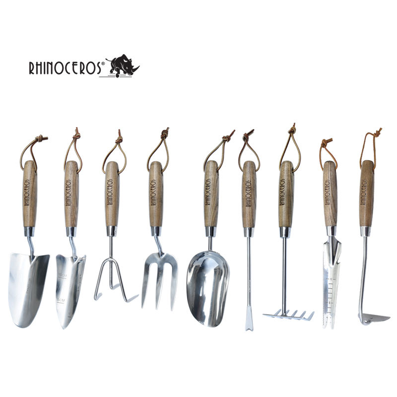 Cyrus diseño personalizado ceniza, mango de madera paleta trasplantadora hogar excavación herramientas de jardinería conjunto