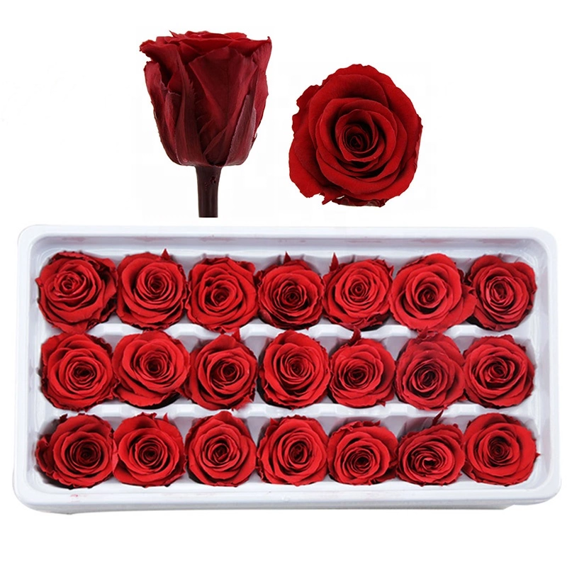 D 5 cm A grade eternal forever immortal flower head preserved roses for wholesale Packing: Wrapping film +bubble bag +foam+carton/pallet
