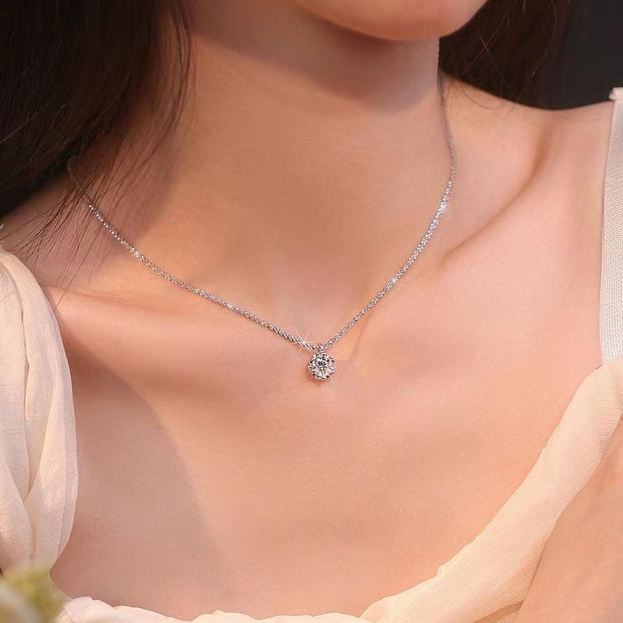 Cadena de clavícula de moissanita de color D S925 chapada en plata esterlina con brillo brillante de rodio para fiesta de boda